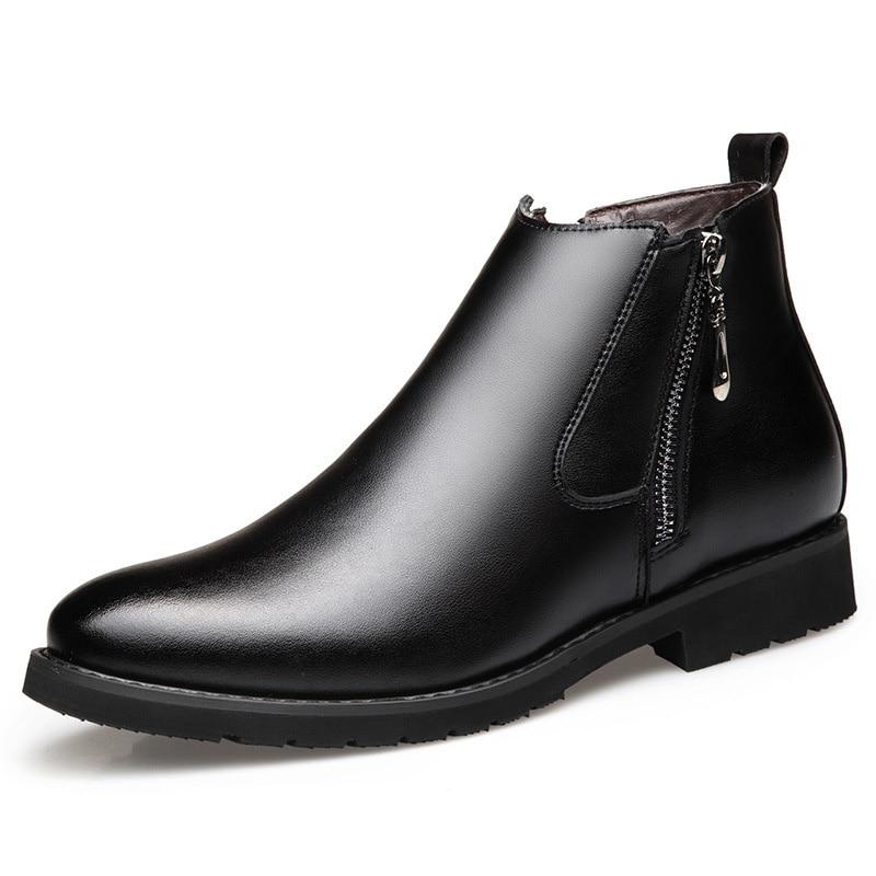 Ботинки челси из натуральной кожи, мужская зимняя обувь, плюшевые теплые туфли, модные зимние мужские ботильоны черного цвета