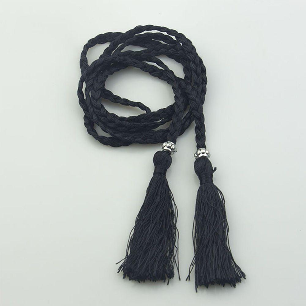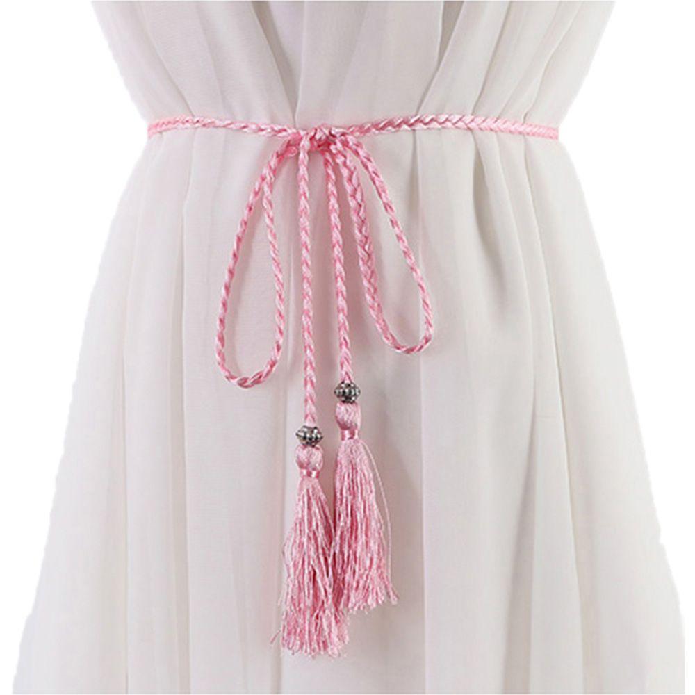 Women Thin Bow Dress Tassle Waistband Waist Rope Braided Belts Waist Chain Tassles Belts