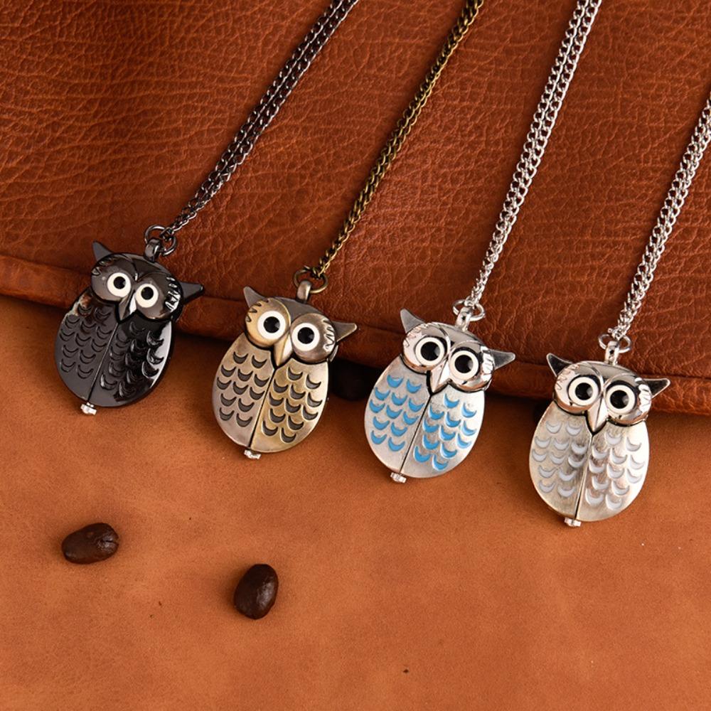 Милый брелок-сова, карманные часы в стиле флип, детские часы, ожерелье, подвесные часы, для повседневной носки