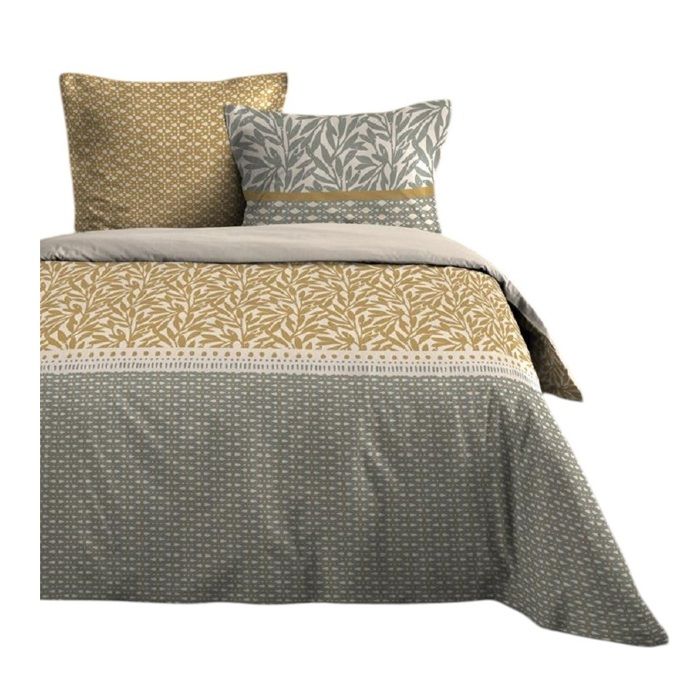 Housse de couette + taies - 240x220cm - Coton - Motif Feuillage - Oeko-Tex®