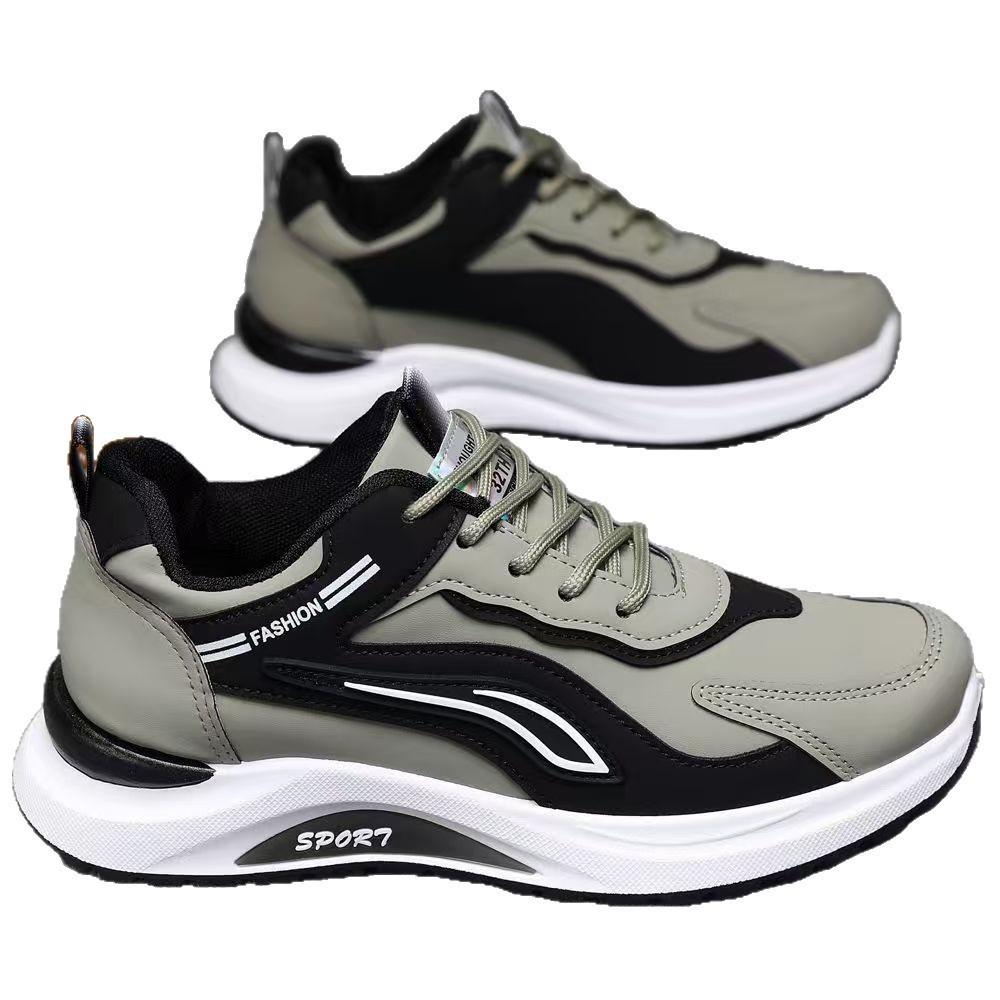 Plus size men's shoes, soft soles, comfortable and breathable leather casual shoes, simple color-blocking student outdoor sneakers