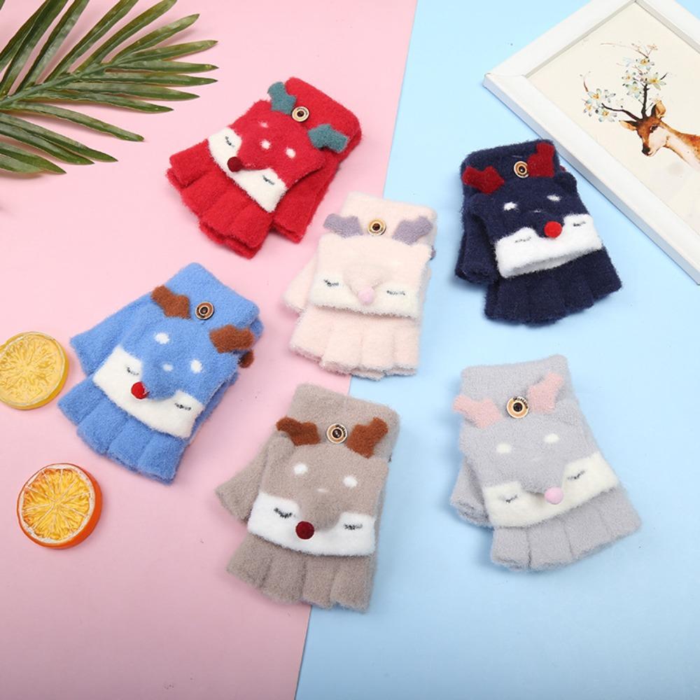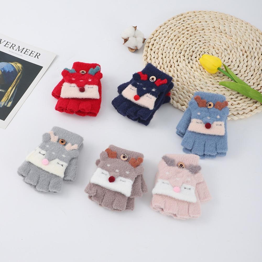 Winter Warm Knitting Mittens Breathable Fingerless Gloves Lovely Kids Gloves Boys Girls