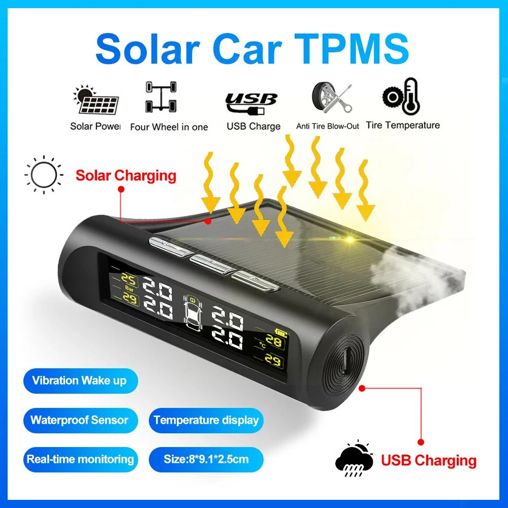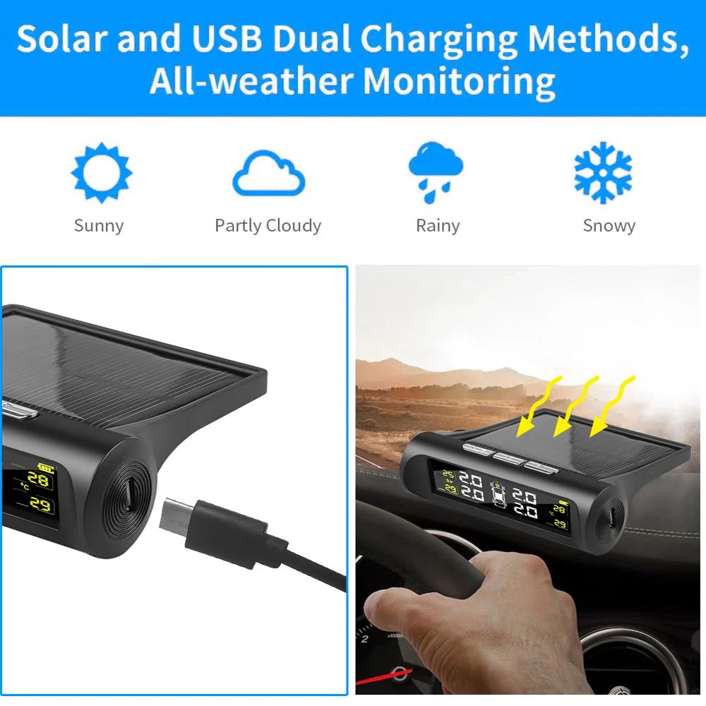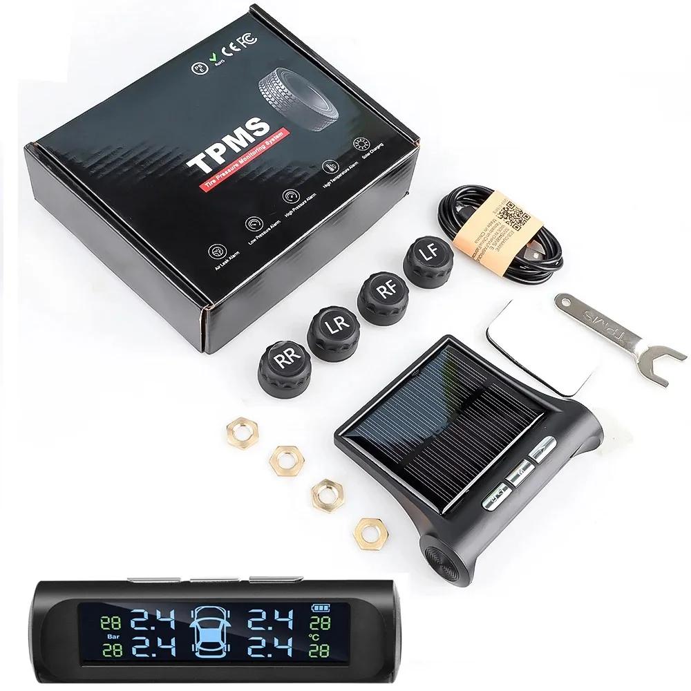 Универсальная система контроля давления в шинах автомобиля, монитор предупреждения температуры шин, USB / солнечная TPMS, системы автоматической охранной сигнализации