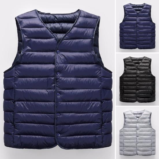 Стильный дизайн с V-образным вырезом и однотонный цвет делают эту мужскую куртку вечным модным выбором.