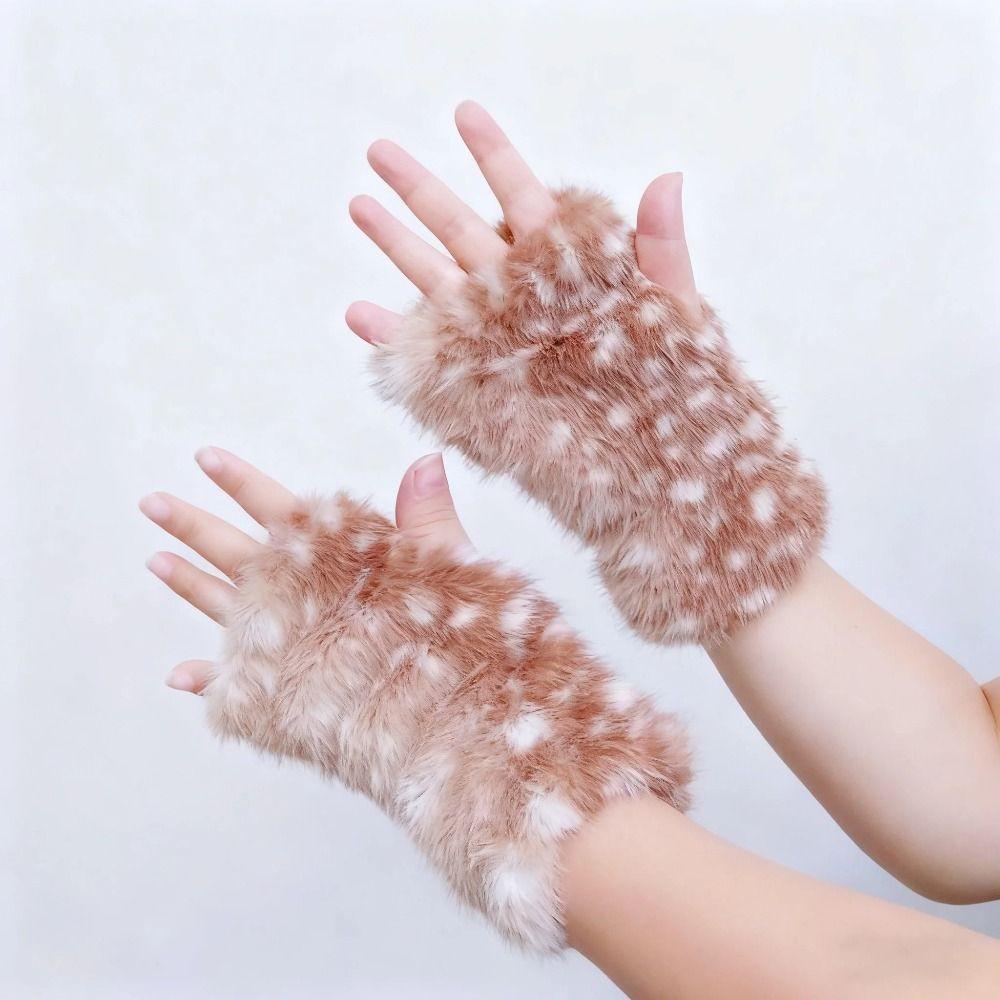 Elk Series Half Finger Gloves Christmas Deer Pattern Dew Finger Hair Gloves Winter