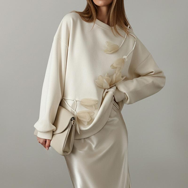 Женское худи пуловер средней длины, свободного кроя, с объемным цветочным узором и длинными рукавами, для осени и зимы