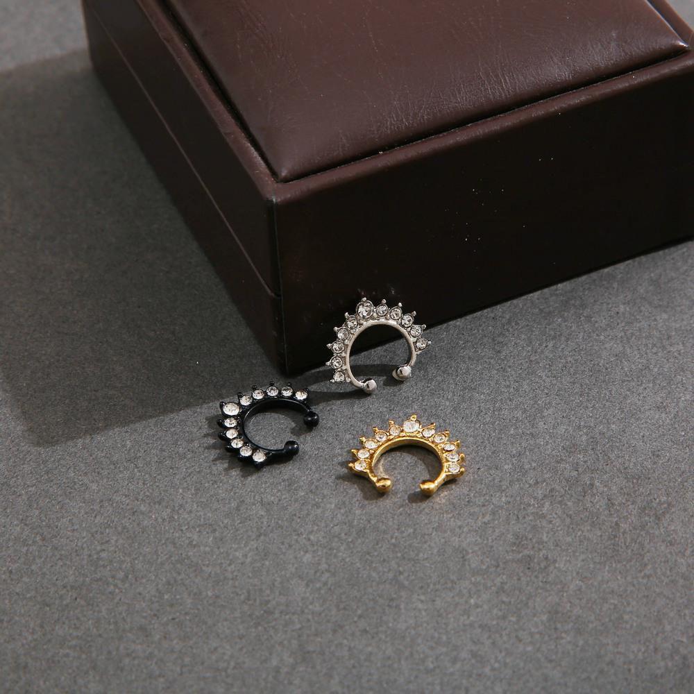 Unisex Cool Punk U Shape Geometric Rhinestone Bear Nose Cuff Fake Nose Ring Nose Stud Body Jewelry