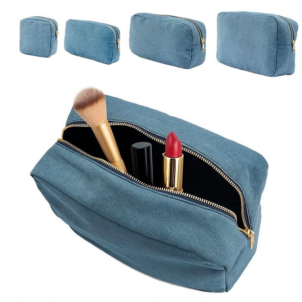 4 Sizes Blue Denim Cosmetic Pouch with Zipper Ladies Makeup Bag Jean Toiletry Case for Women