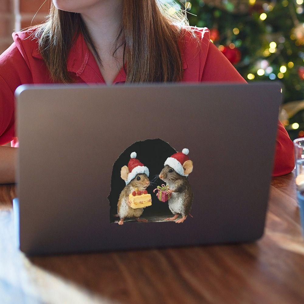 5 шт. Новые рождественские наклейки на стену с мышонком, милый дизайн, маленький размер, рождественское украшение, декор «Счастливого Рождества», праздничный декор