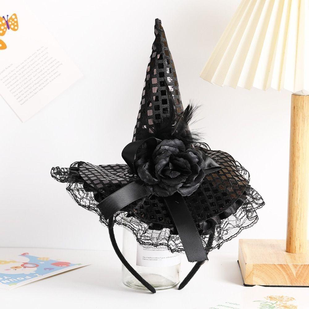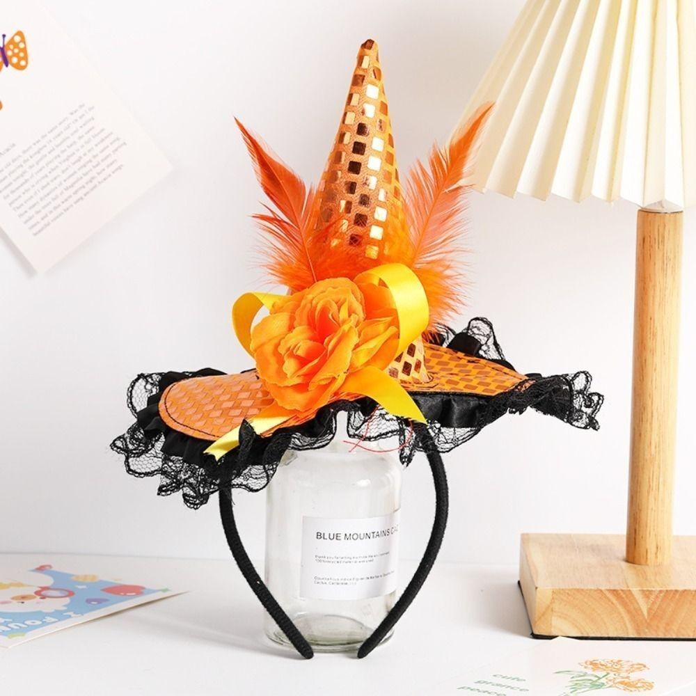 Модная мультяшная шляпа ведьмы Декор для вечеринки Кружево Блестки Обруч для волос Тканевая повязка на голову Хэллоуин