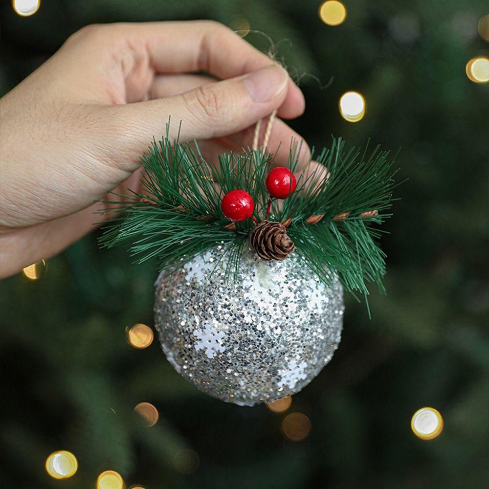 Red Pine Needle Sticky Ball Fome Christmas Balls Set Creative Christmas Sticky Pink Ball for Home