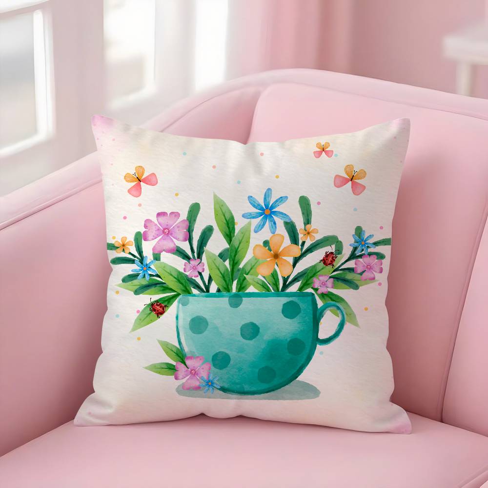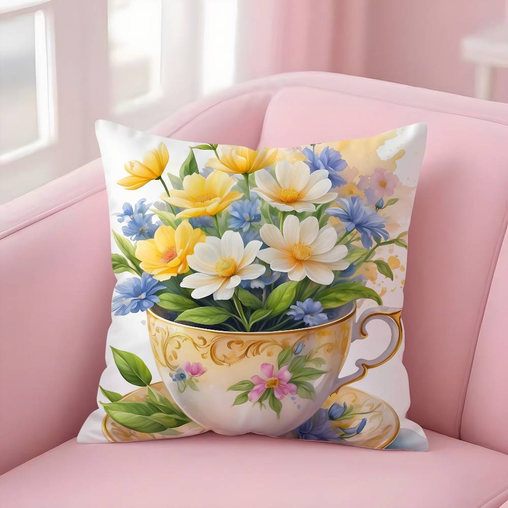 Наволочка Подушка Чашка с Цветами Мягкая Плюшевая Ткань Двусторонняя Печать Декоративная Для Дома Гостиная Подарок Наволочка