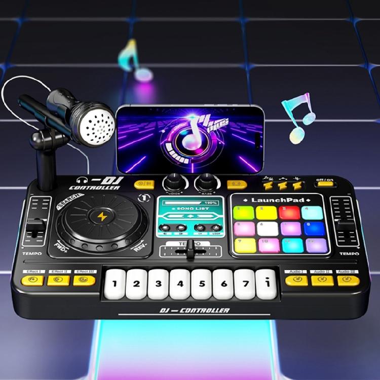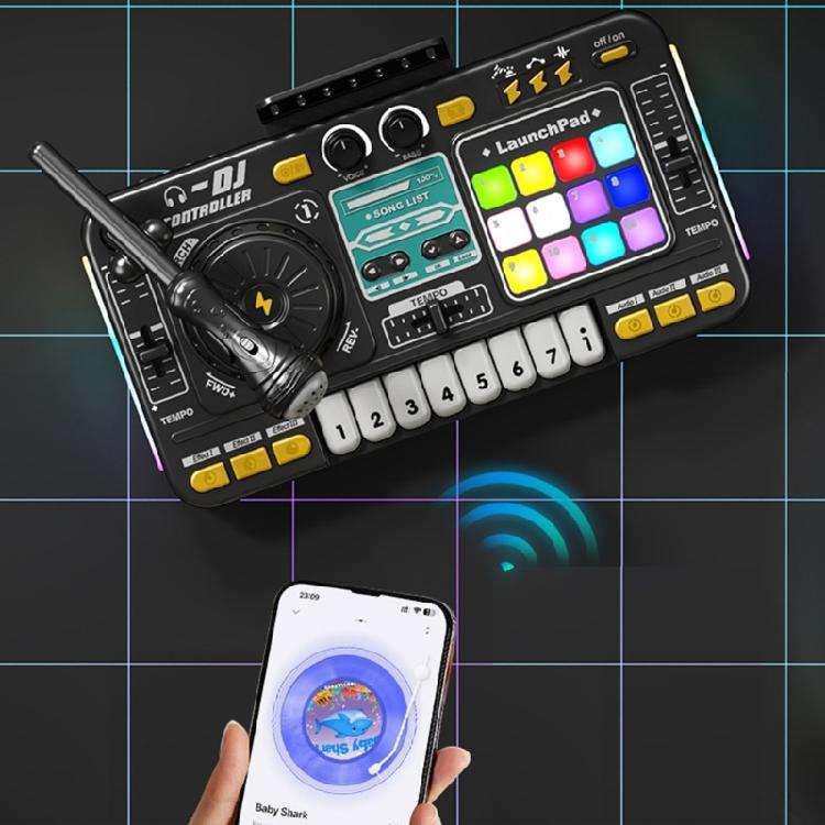 Interactive DJ Mixer Set Music Instrument Toy For Toddler Phone Connectivity 12 Sound Effects Musical Education Toy