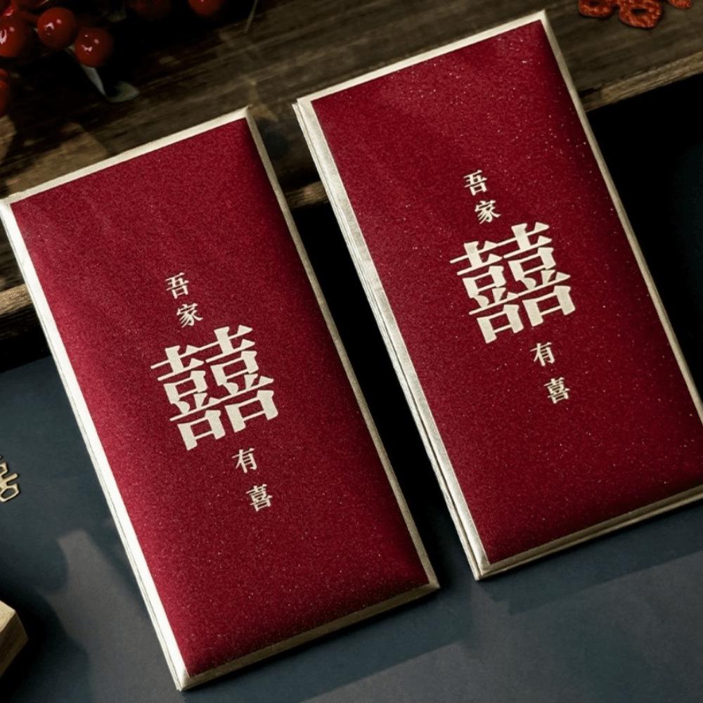 New Year Blessing Words Wedding Red Envelope Bronzing Pearlescent Paper Mini Money Pocket S/M/L Size Spring Festival