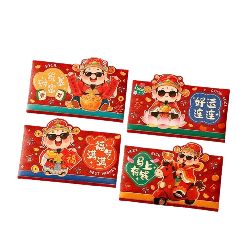 4 шт. Мультяшный Новогодний конверт для денег, Бумажное рукоделие, Смешанный узор, Мешочек для удачи, Благословение, Утолщенный, 2026 год Лошади, Красные карманы — купить товар онлайн с бесплатной доставкой по всему миру!