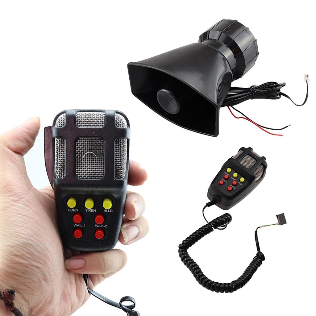 100 Вт 12 В 7 звуков Автомобильный динамик для грузовиков Предупреждающая сигнализация Полиция Пожарная сирена Рог Громкий звук 105 дБ с микрофоном