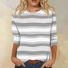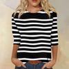 Женская модная повседневная футболка с круглым вырезом, рукавом три четверти, в полоску с принтом