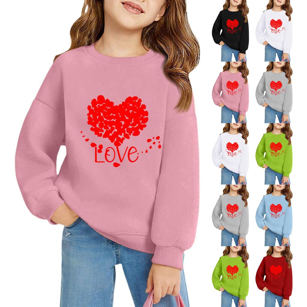 Свитшоты с круглым вырезом для девочек, детские топы с принтом на День святого Валентина
