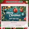 Merry Christmas Banner Colorful Ornaments Holiday Banner Christmas Party Banner Gold Bows For Indoor Decoration Office Home