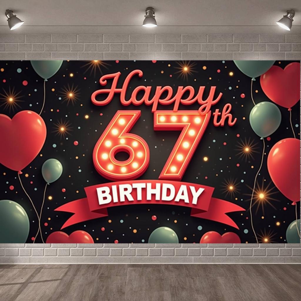 Birthday Party Backdrop Sparkling Stars 67th Celebration Background Party Celebration Backdrop Colorful Confetti For Photo Shoot