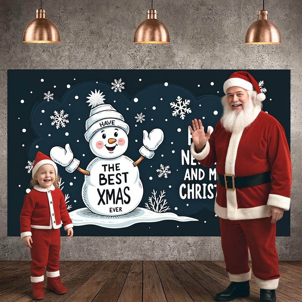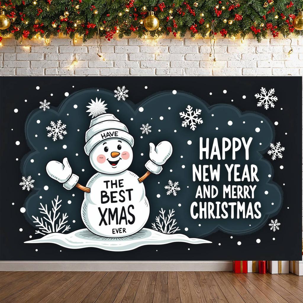 Winter Background Snowman Happy New Year Banner Xmas Display Snowflake Decor Holiday Background For Indoor Decoration Photo