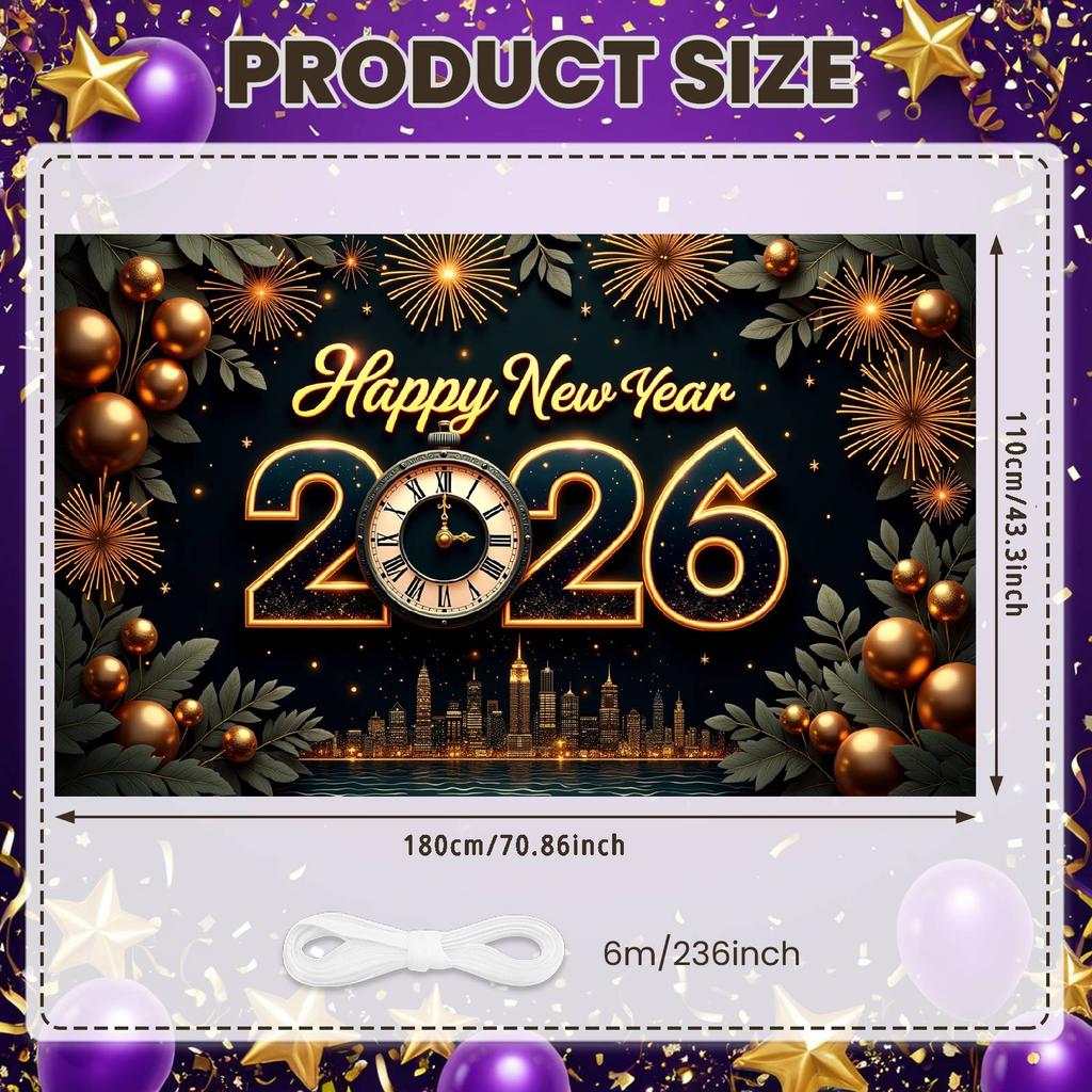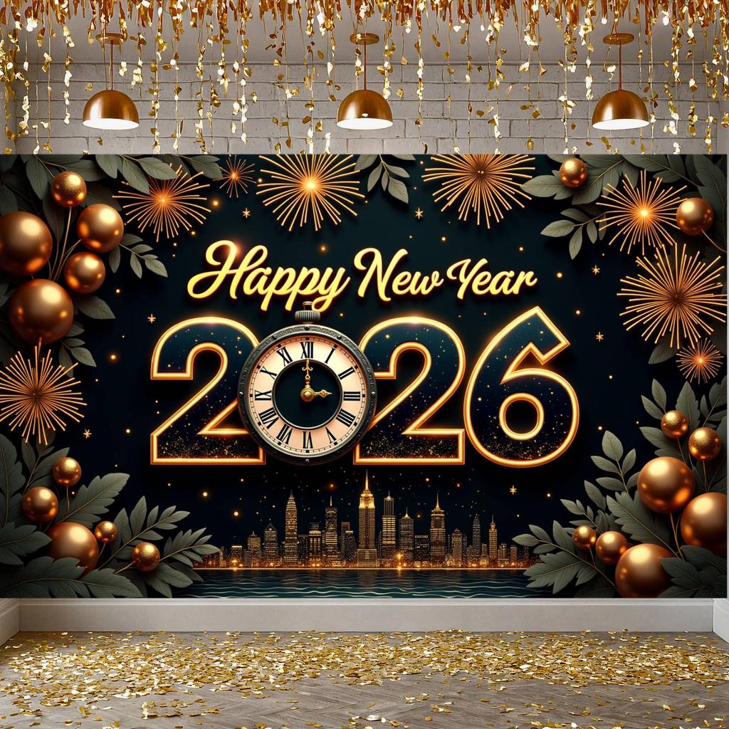 2026 New Year Display Golden Balloons Happy New Year Banner Year 2026 Banner Sparkling Effect For Holiday Event