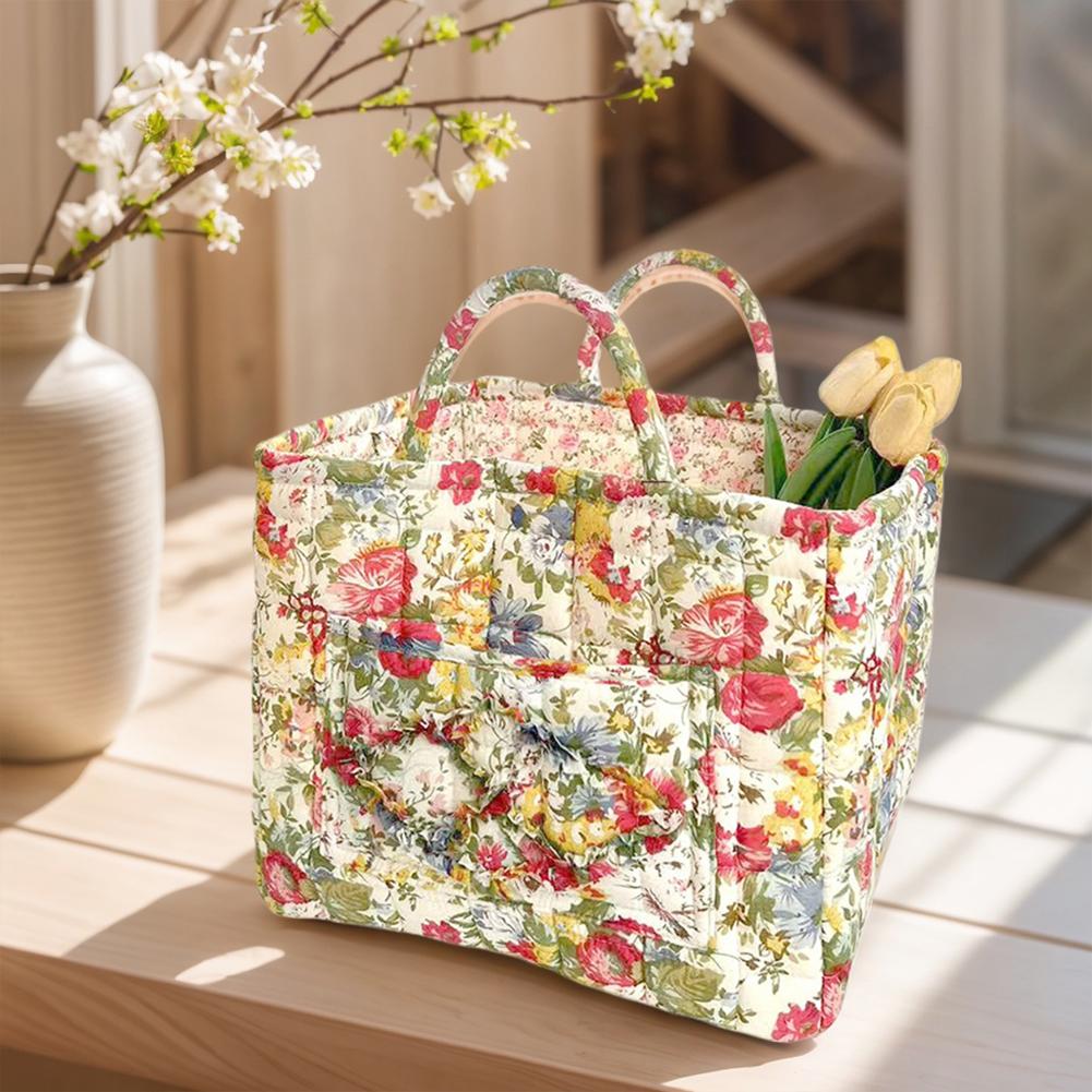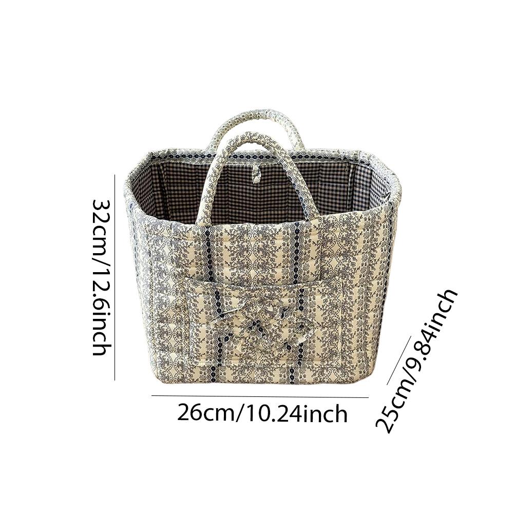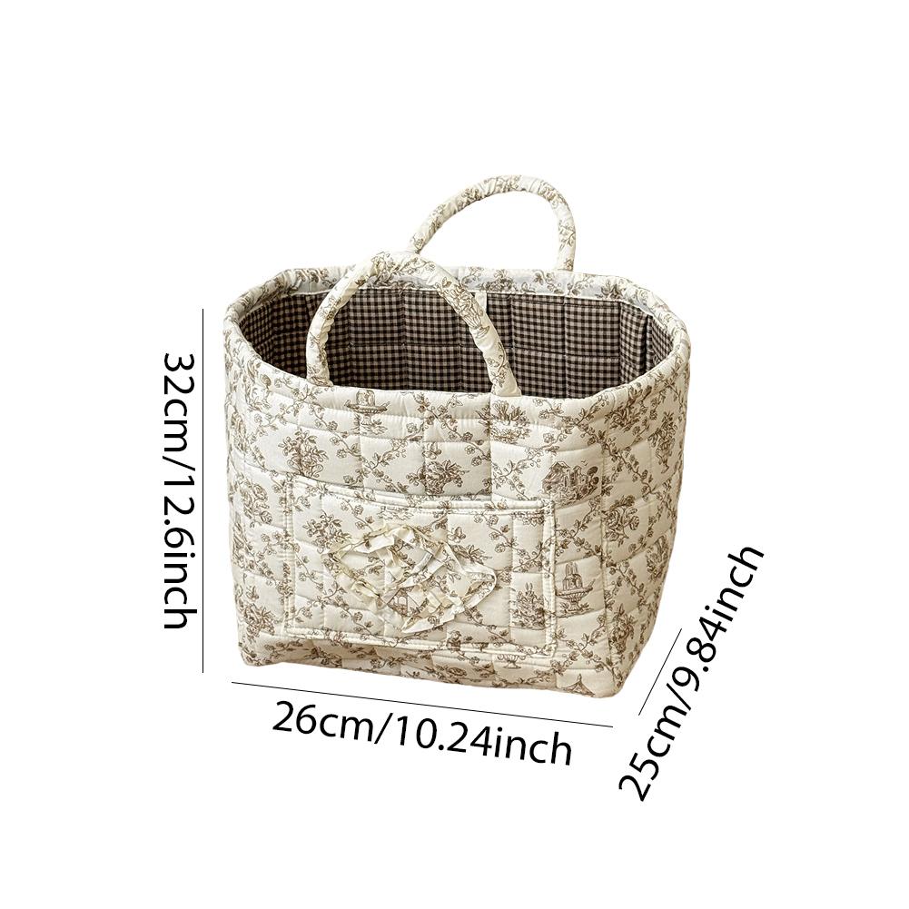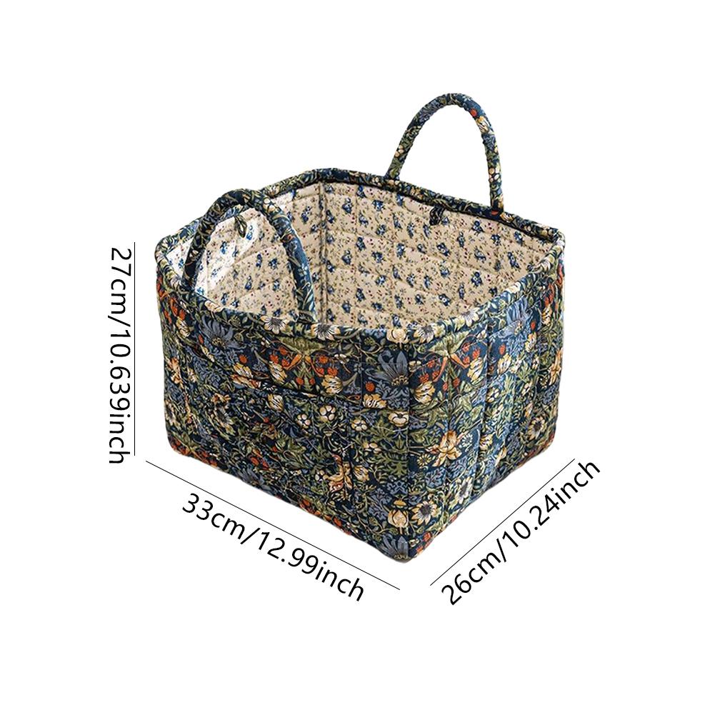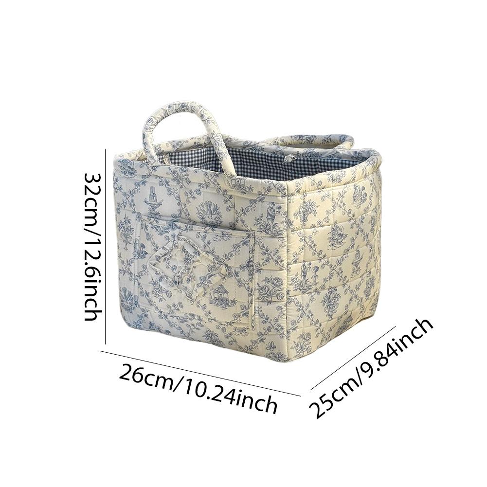 Корзина для хранения из ткани в пасторальном стиле с ручкой, стеганая корзина для белья большой вместимости, портативная корзина для сортировки нижнего белья для дома