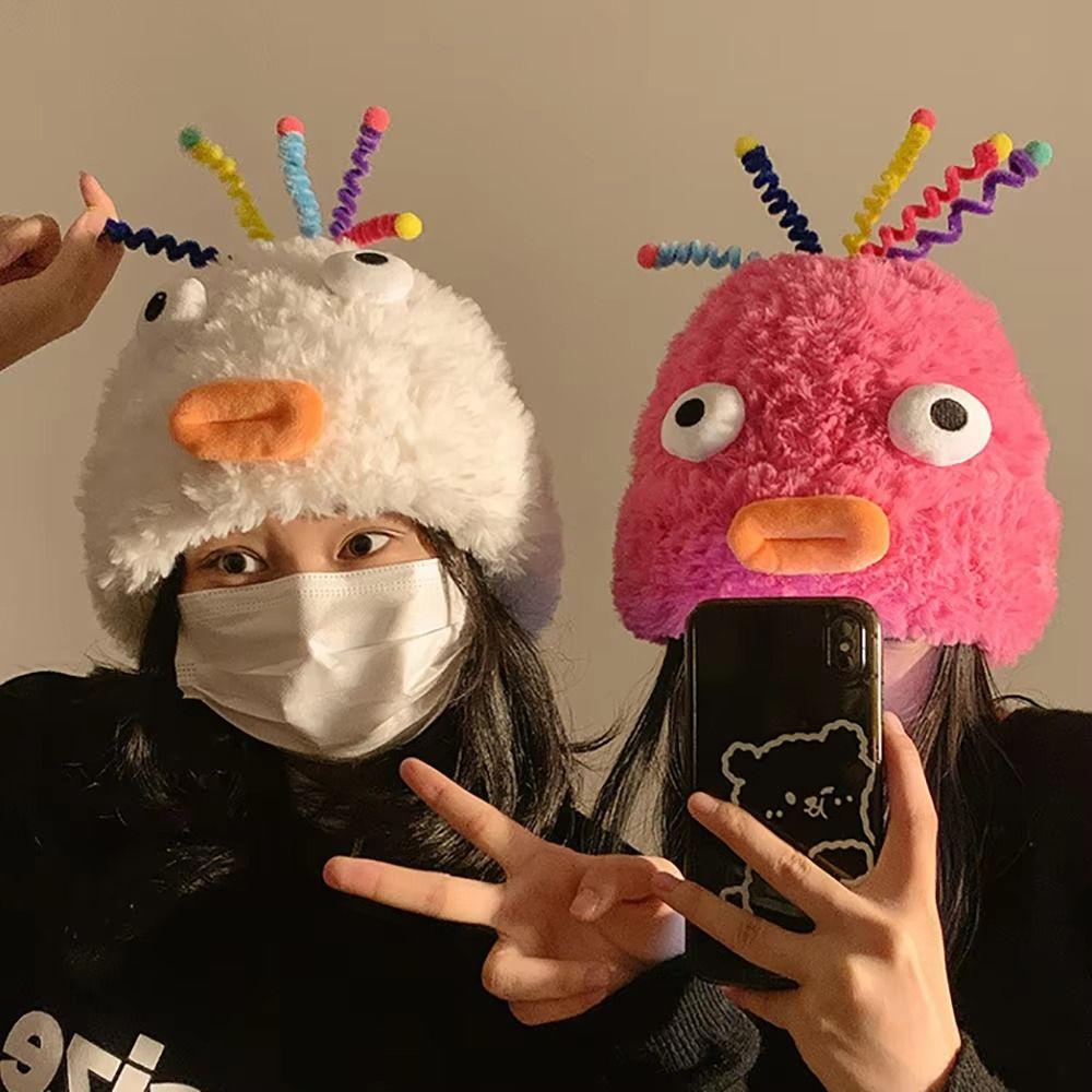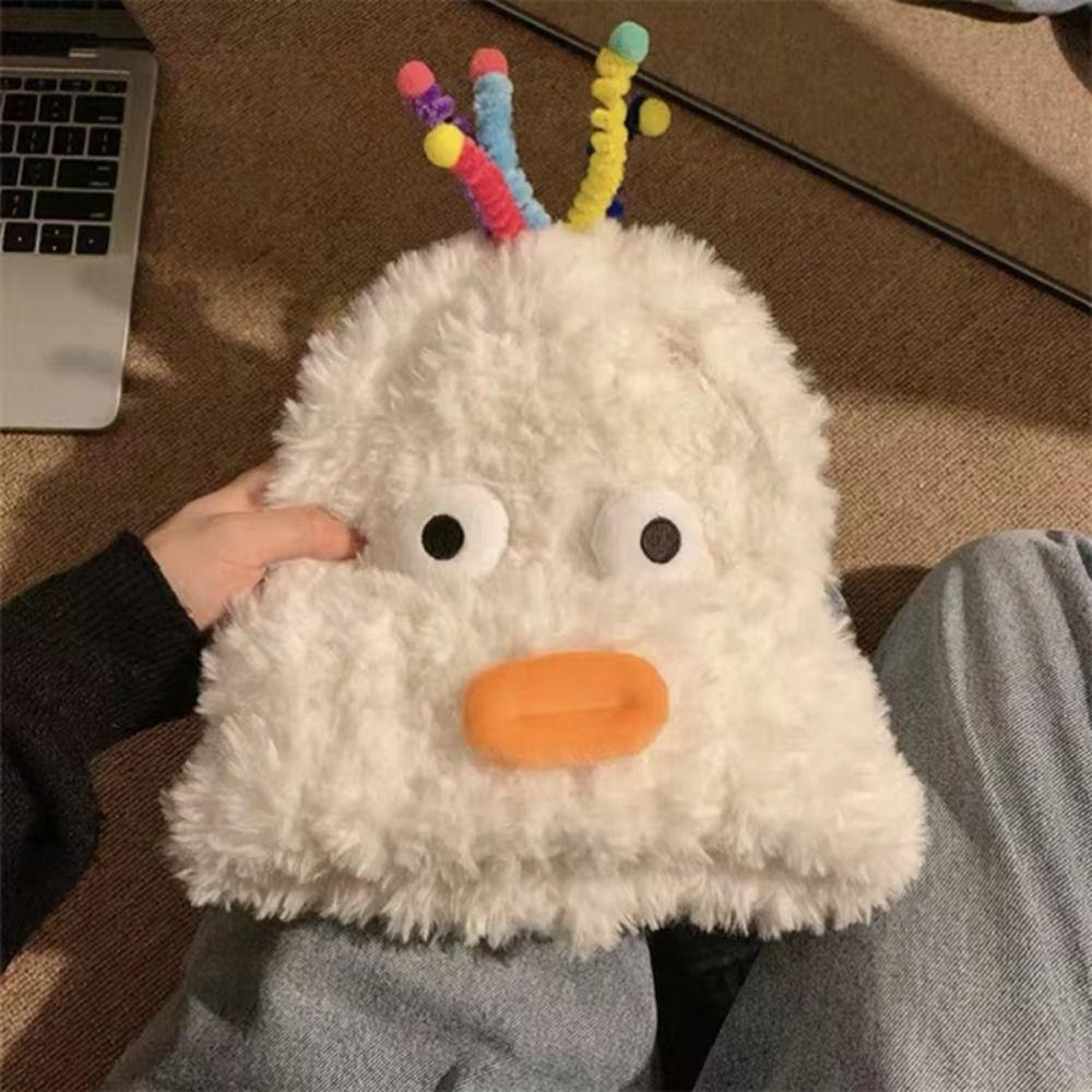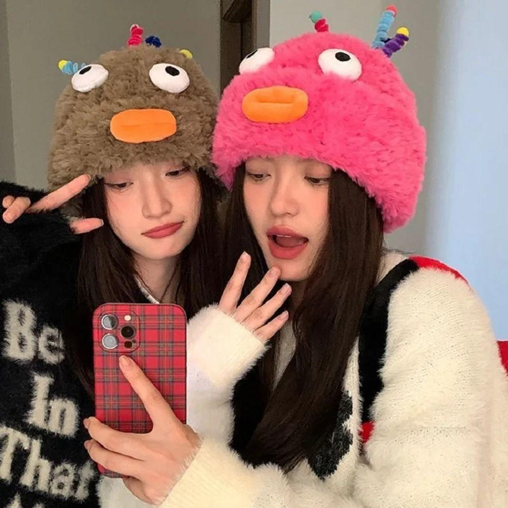 Warm Funny Plush Beanies Y2k Winter Outdoor Cap Kawaii Cartoon Big Eyes Hat Students
