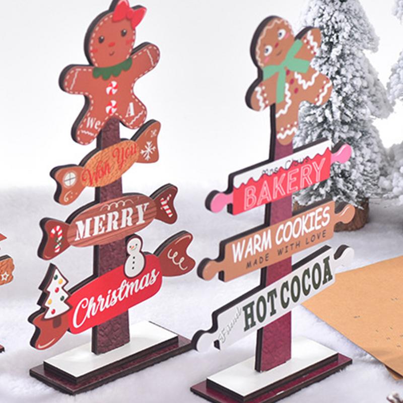 Деревянные Рождественские елки Пряничный человечек На верхушке Настольная Рождественская елка Декоративный Рождественский декор для многоярусного подноса Знак Праздничное украшение