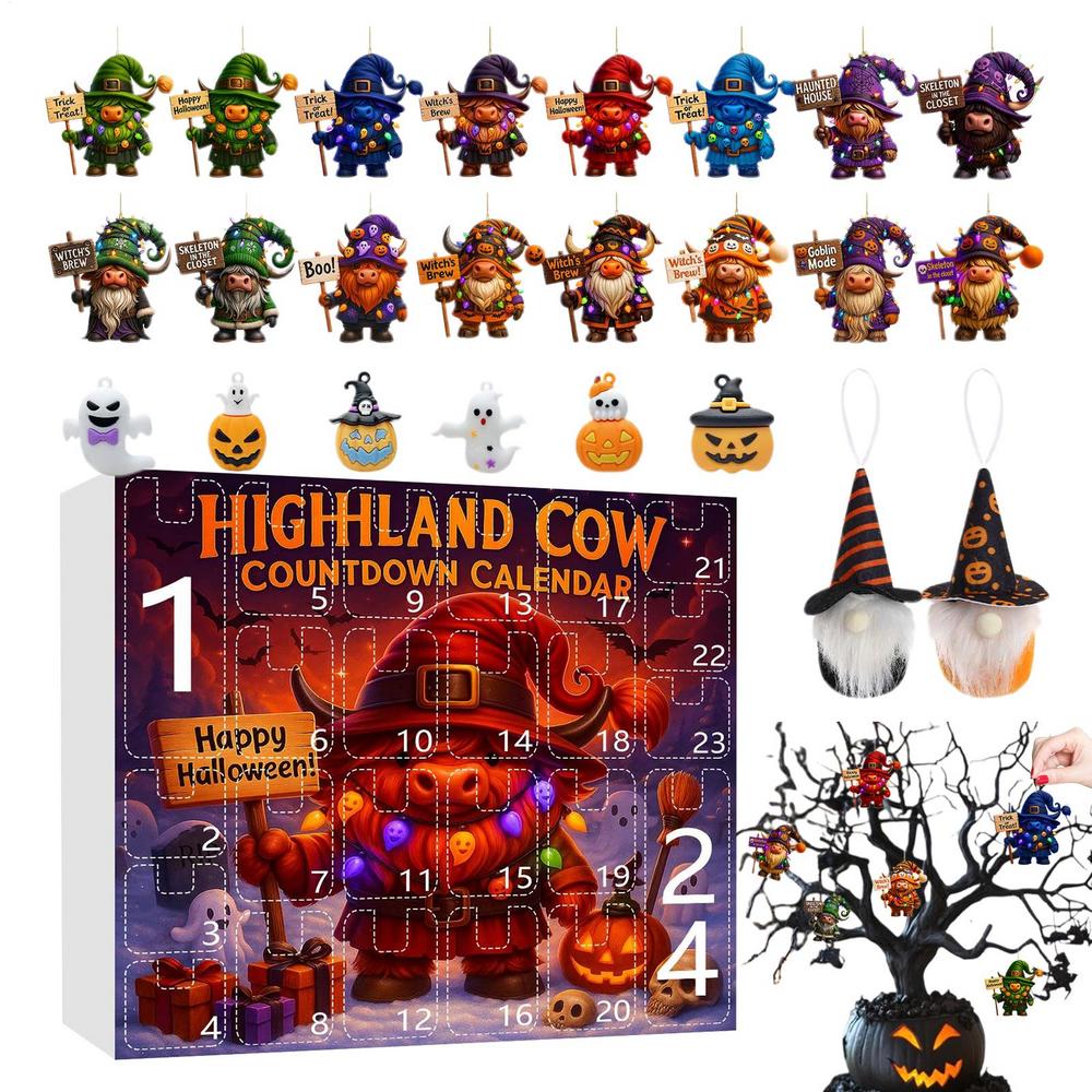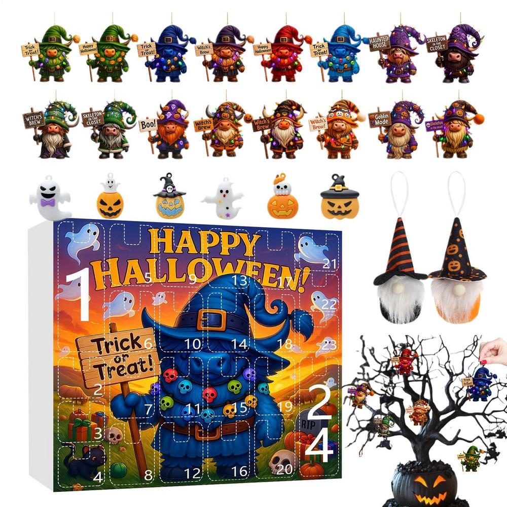 Gnome Countdown Calendar 24-Day Gnome Ornament Halloween Countdown Calendar Collectible 3D Resin 2D Acrylic Ornament for Kids