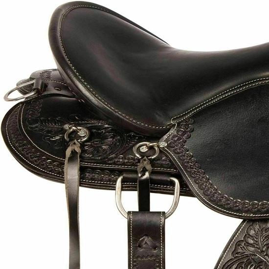 Это идеальный комплект седла для трейл-эндуро для вас! Глубокое сиденье обеспечивает комфорт и поддержку в течение долгих часов на трассе.. Это седло имеет закругленную юбку, которая отлично подходит для лошадей с короткой спиной.. Ручная резьба с цветочным орнаментом, кожаные стремена и многочисленные завязки придают этому комплекту седла стиль и класс.. Многочисленные резиновые кольца отлично подходят для всех ваших аксессуаров. Встроенная оснастка и нейлоновые усиленные кожаные подпруги обеспечивают дополнительную безопасность и прочность. Очень хорошо набитая флисовая юбка обеспечит вашей лошади дополнительный комфорт. Это седло включает в себя подходящий наголовник, поводья и нагрудник! Чинчи не входят в комплект.