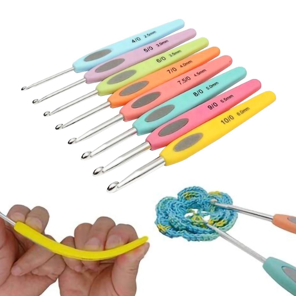 Горячий! 8 шт./набор Разноцветные крючки для вязания из алюминия с мягкими пластиковыми ручками 2,5-6 мм Инструмент