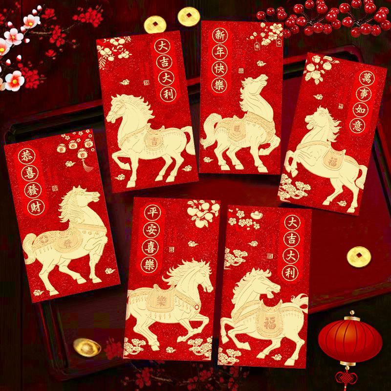 30 Pcs 2026 Year Of The Horse Red Envelope Creative Cartoon Gold-Stamped New Year Red Packet Chinese Spring Festival Hongbao