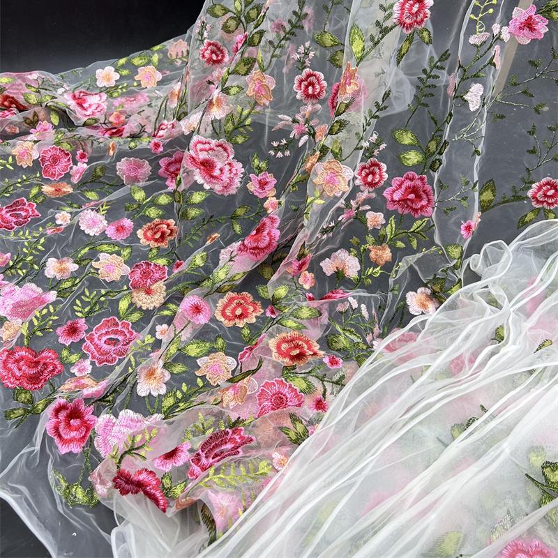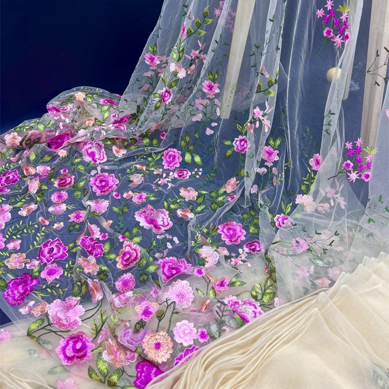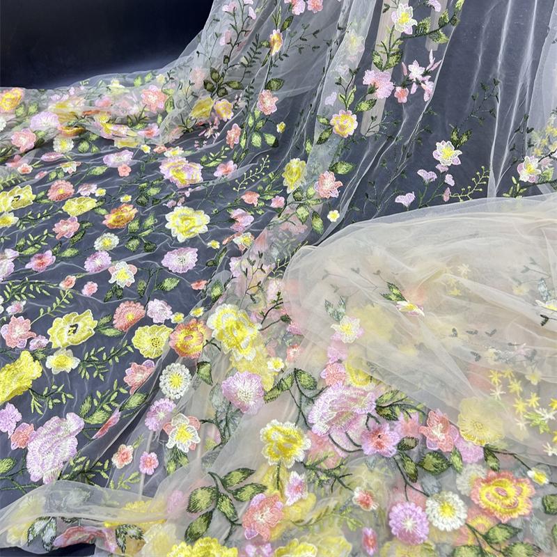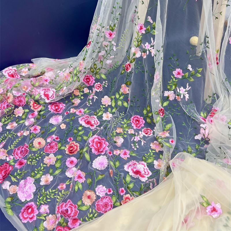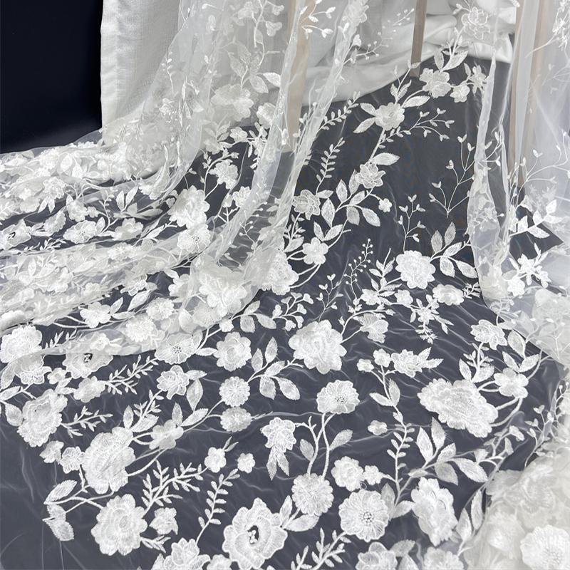 1/2/3 Ярда 3D Цветочная Вышивка Ткань с Цветами Роз Элегантная Тюлевая Кружевная Ткань DIY Шитье Свадебное Платье Сценический Костюм Поделки