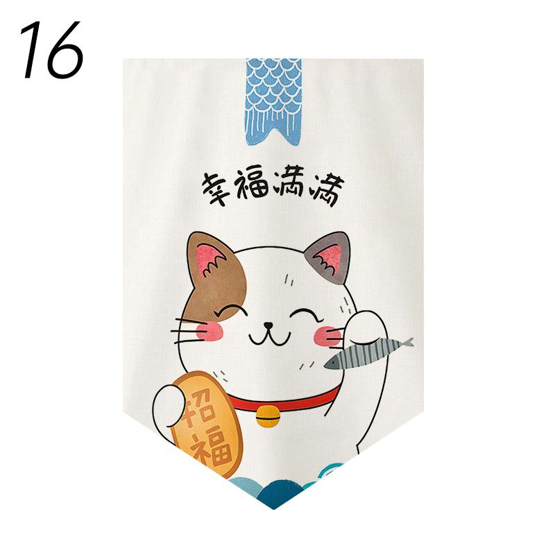 Короткая занавеска в японском стиле с принтом кота удачи, треугольный флажок, кухонная перегородка, половина занавески для ресторана, декор для идзакая, суши-шопа