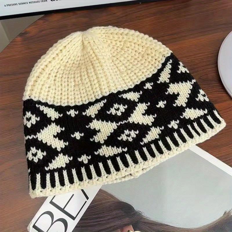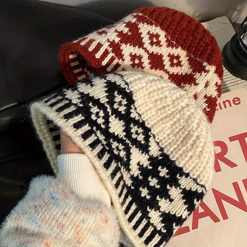 Winter Warm Knitted Hat for Women Retro Embroidered Blend Beanie Cap Unisex Ear Protection Winter Camping Hiking Caps