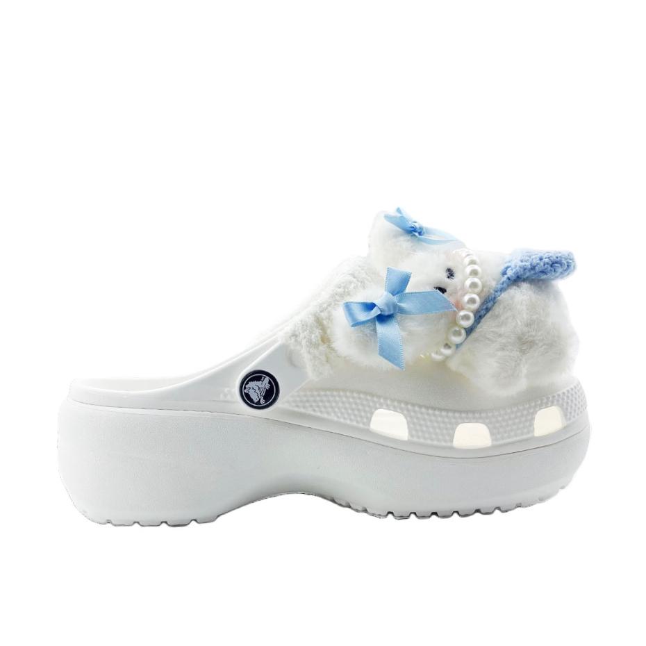 Crocs Классические клоги на платформе EVA Синий Шляпа Кролик Школьный стиль Дырочные туфли Унисекс Белый