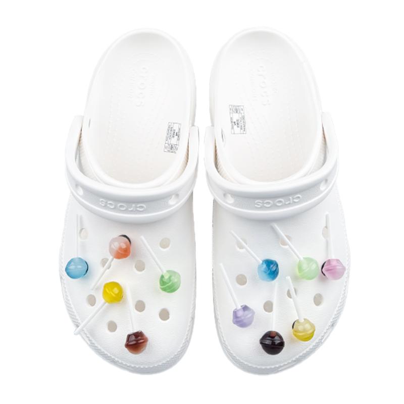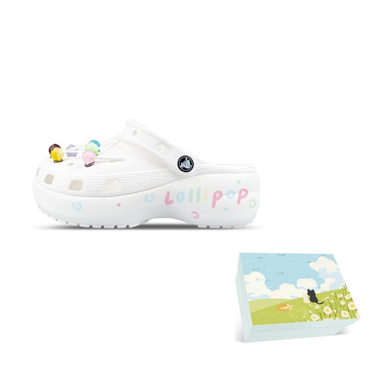 Crocs Классические клоги EVA Дофамин Трехмерная подвеска Элемент леденца Подарочная коробка Дырочные туфли Женские Белые