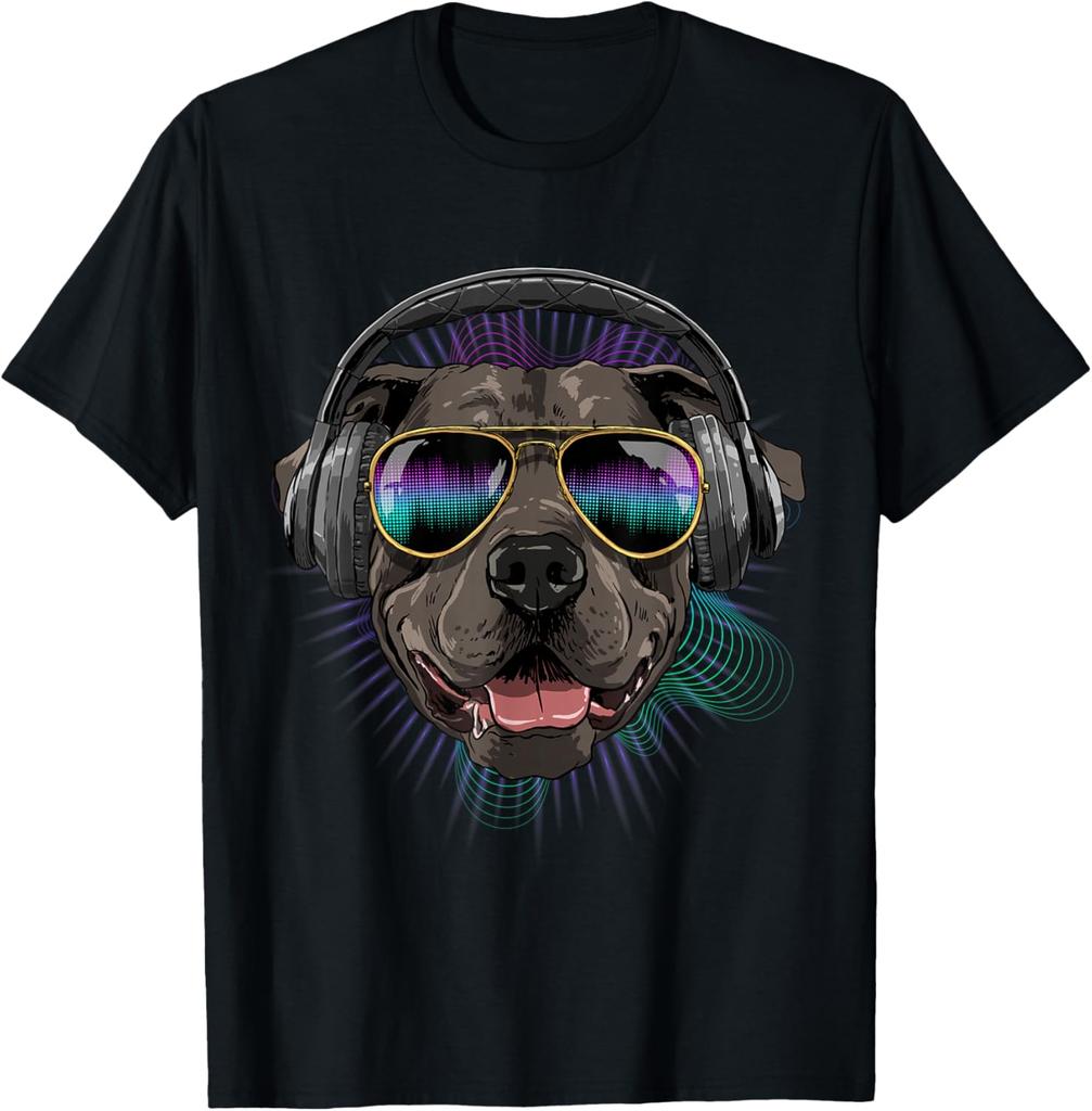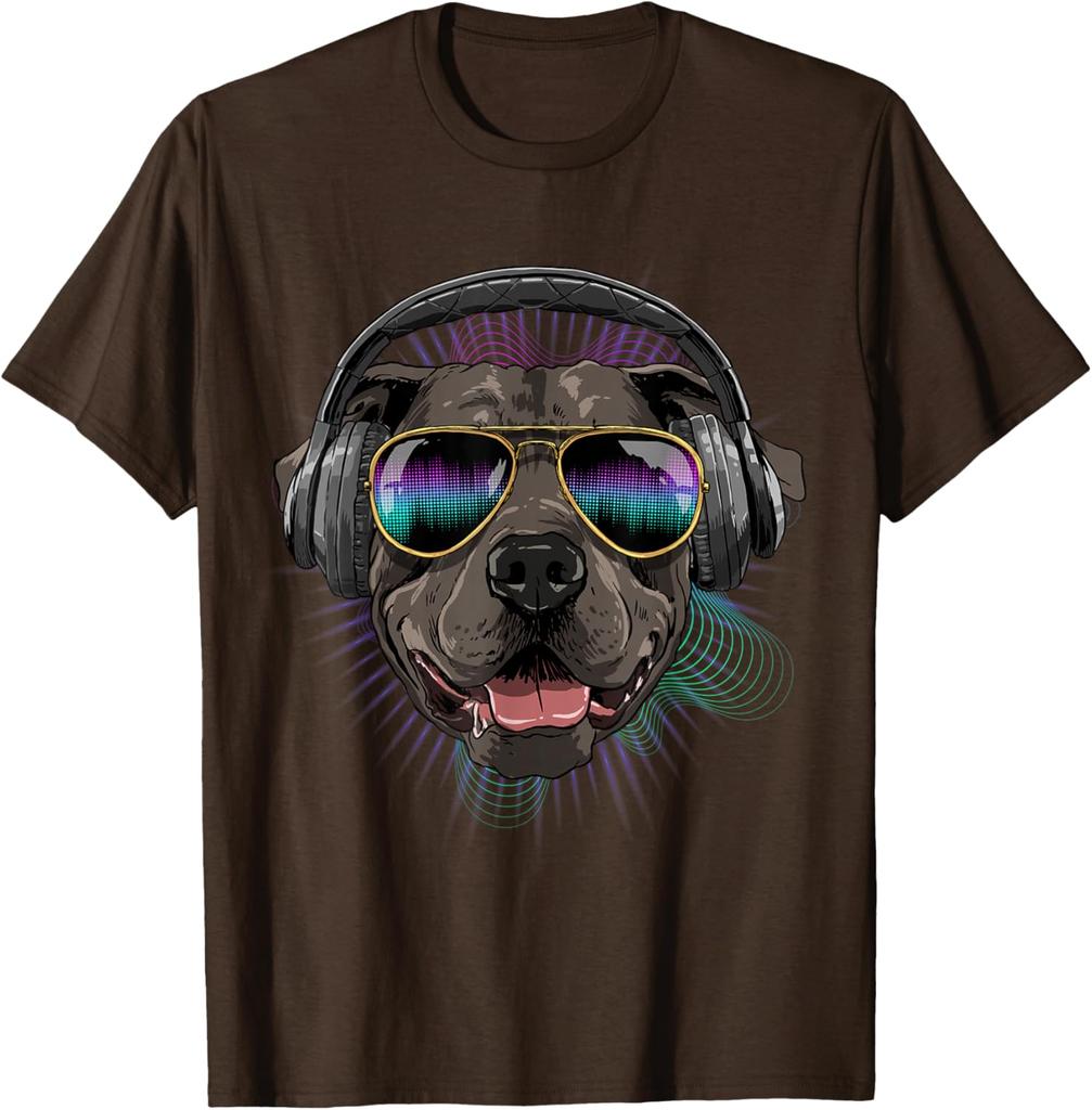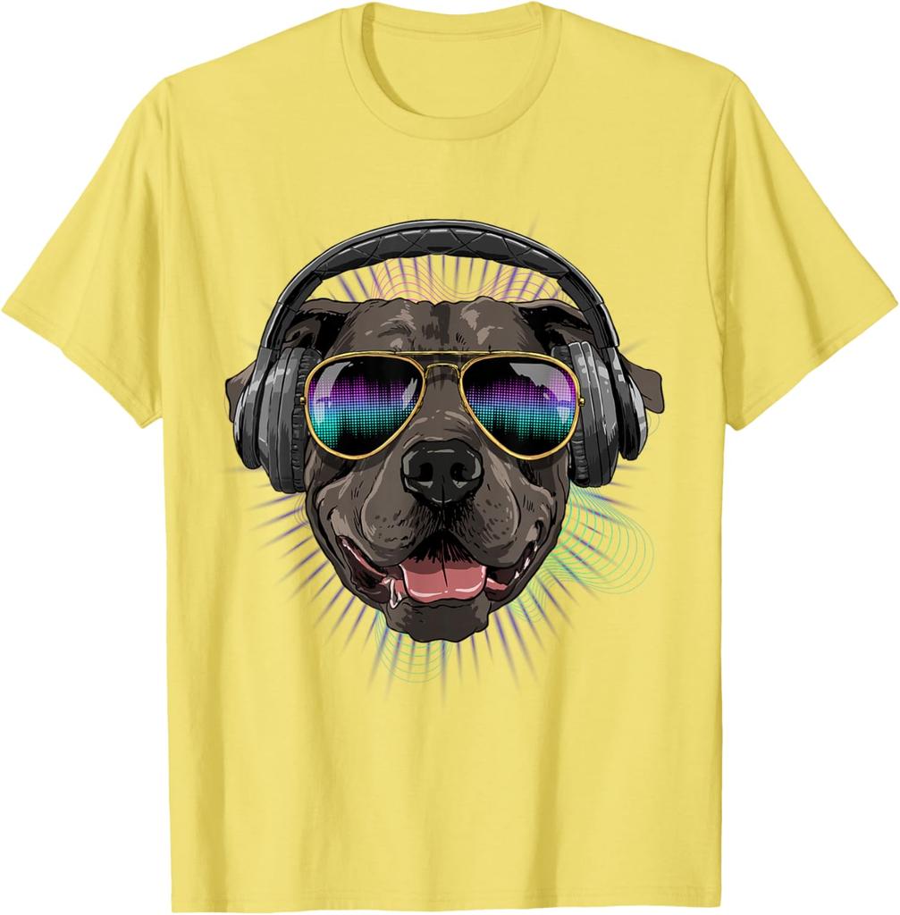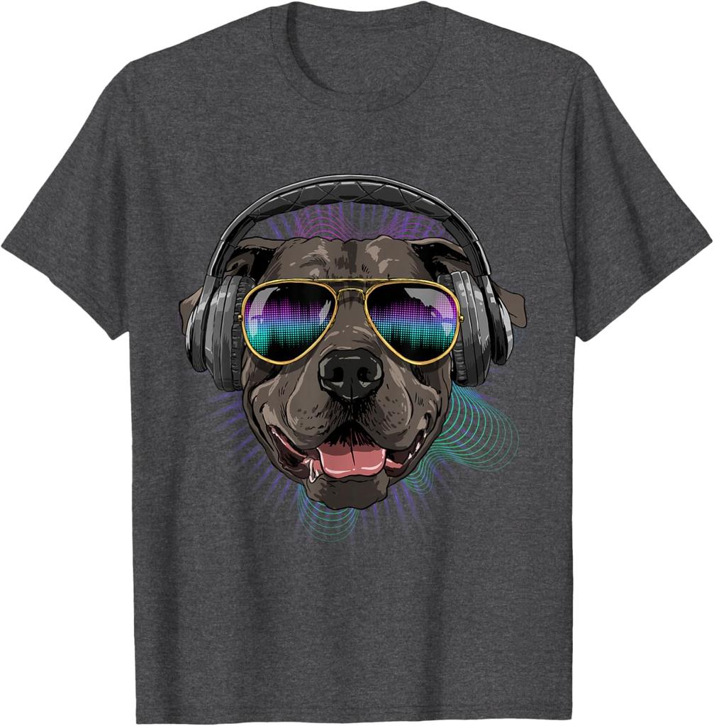 Music Pit Bull DJ Graphic Print Men's Cotton Crew Neck T-Shirt Summer Trip Tee