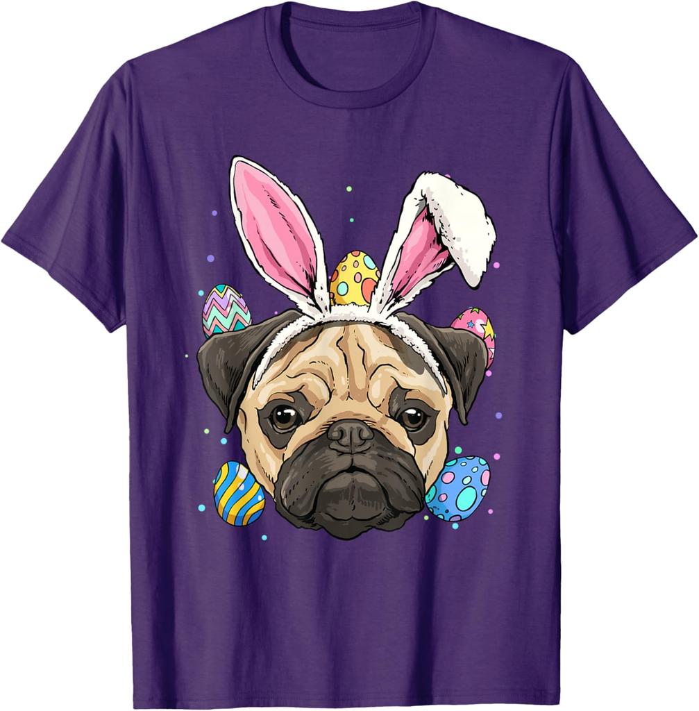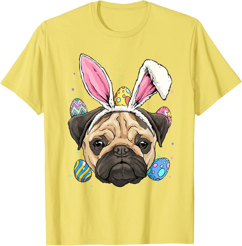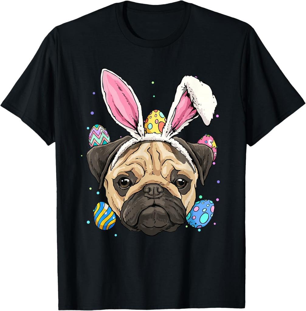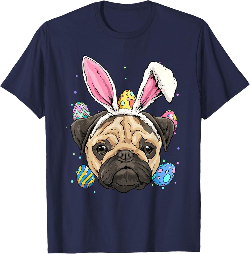 Pug Easter Bunny T-Shirt Cute Dog Wearing Bunny Ears Graphic Tee Spring Holiday Gift