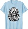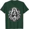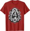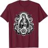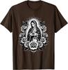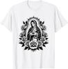 Virgin Mary Guadalupe Roses Graphic T-Shirt Religious Catholic Virginita Floral Print Tee Men Casual