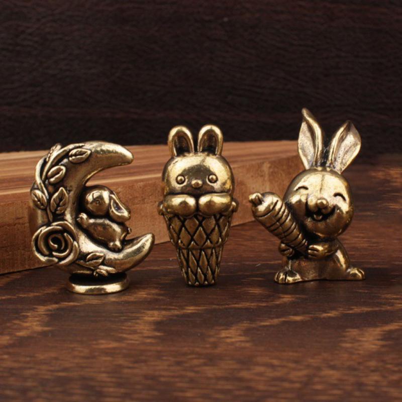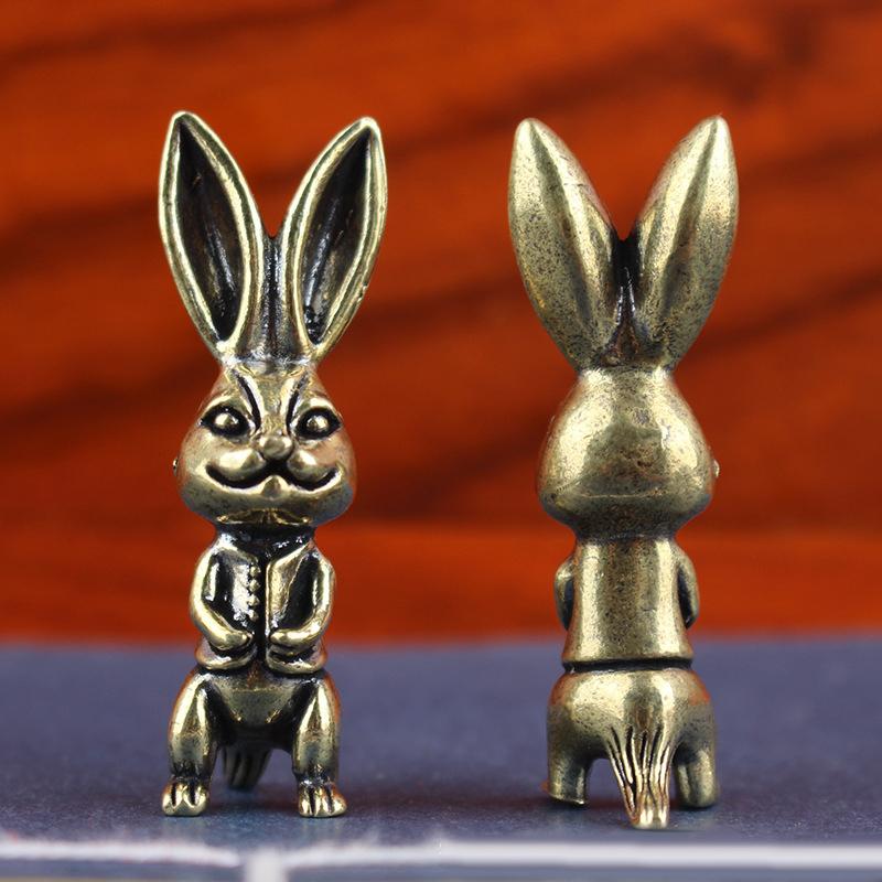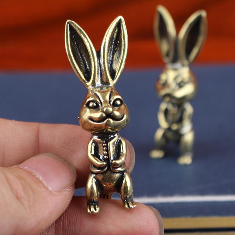Милая латунная статуэтка кролика в винтажном стиле, фигурка кролика, ландшафтный дизайн по фэн-шуй, украшение для дома, стола, офисной полки, пасхальное украшение