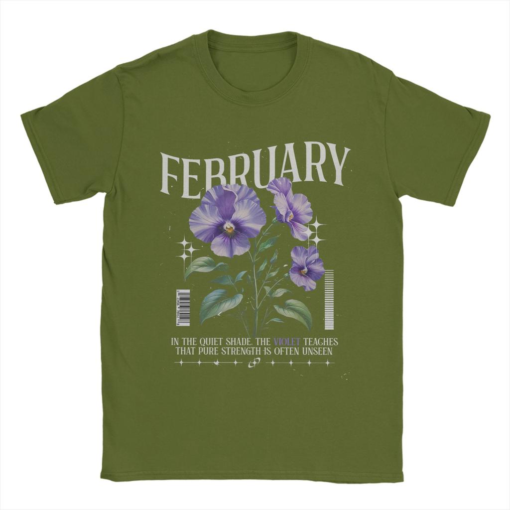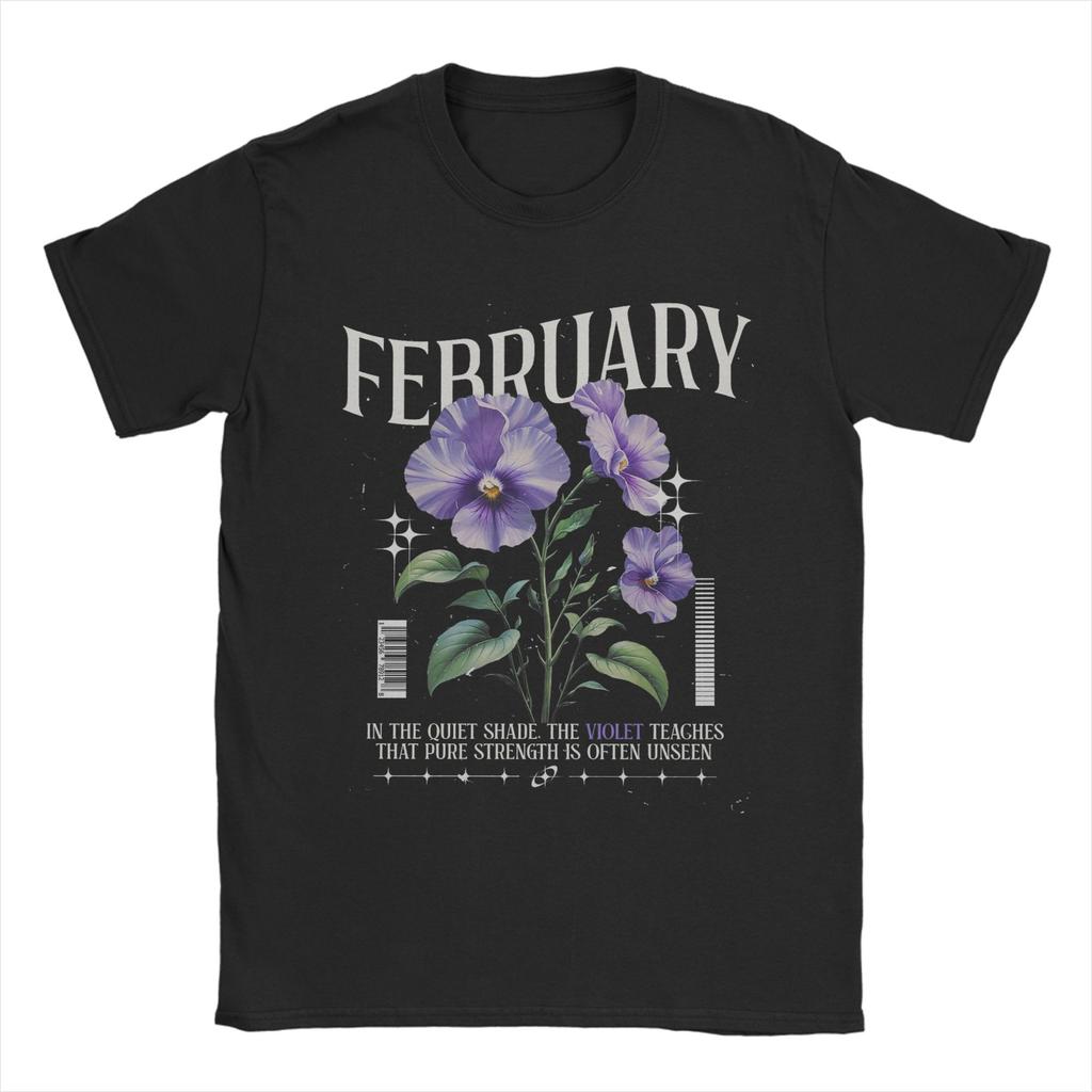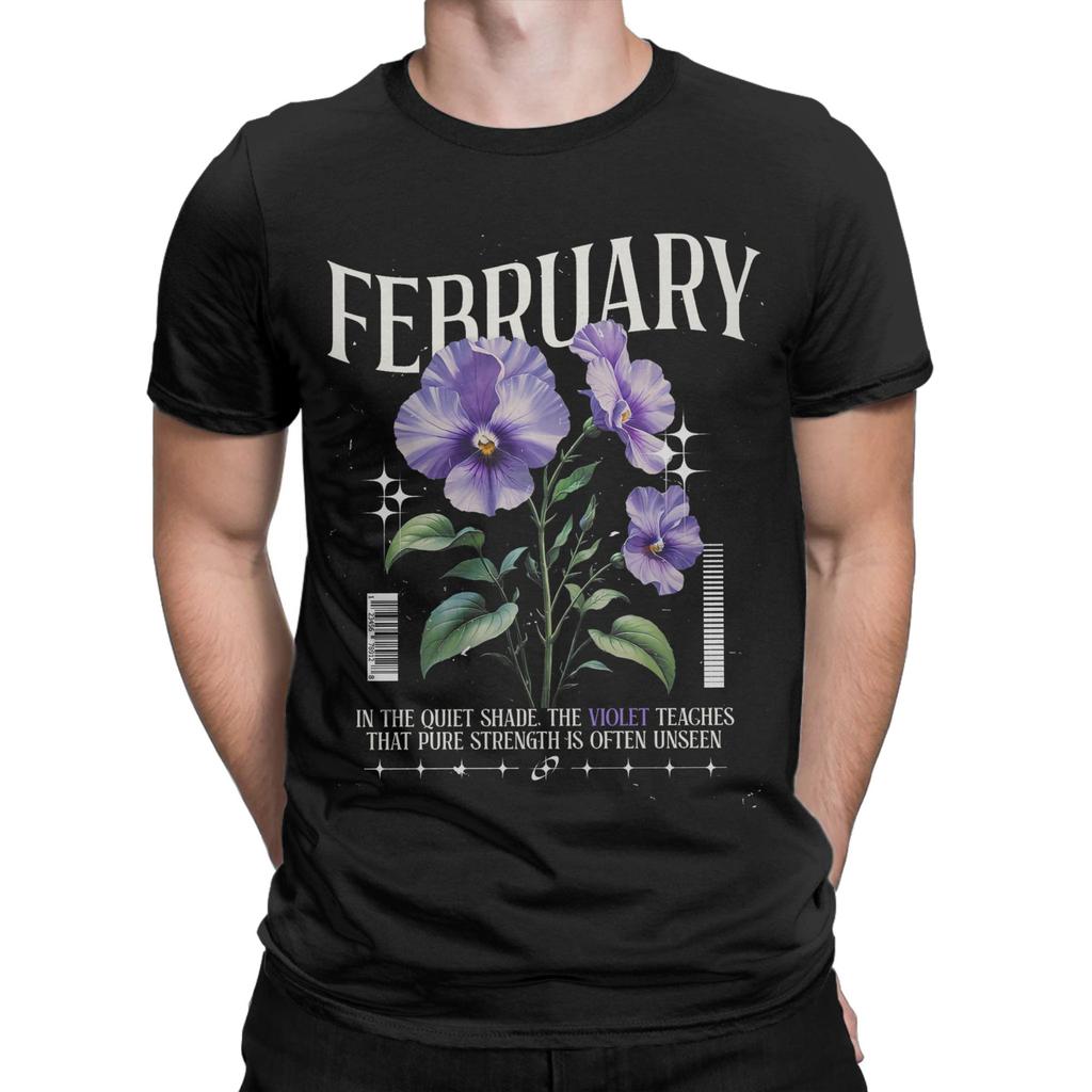 Цветы рождения Февраль Фиалка Цветок рождения Мужские футболки Удивительная футболка с коротким рукавом и круглым вырезом Хлопковая одежда с принтом