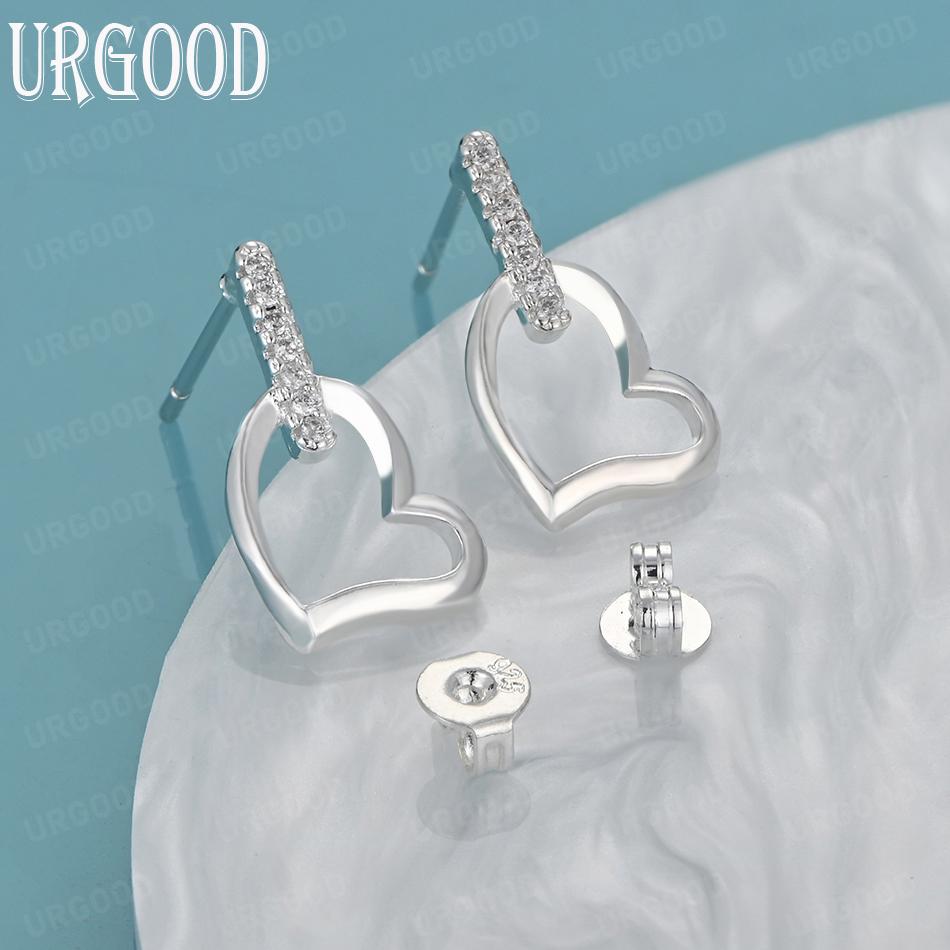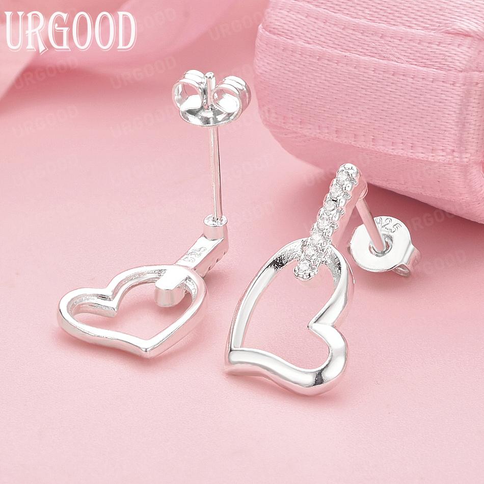 925 Sterling Silver AAA Zircon Pierced Earrings Fashion Heart Wedding Jewelry