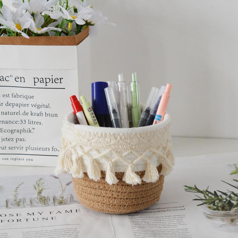 Плетеные вручную настольные коробки для хранения ручек, большой вместимости, корзина для сортировки мелочей, домашний органайзер для закусок, игрушек, канцелярских товаров, подставка для карандашей