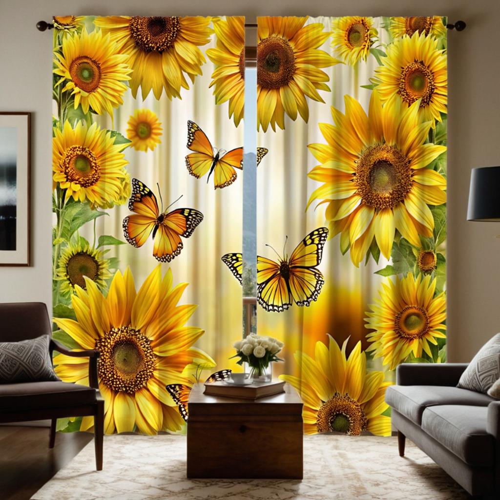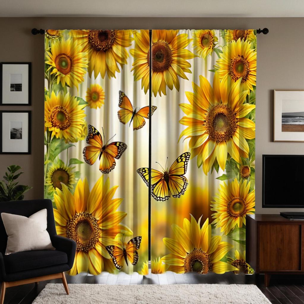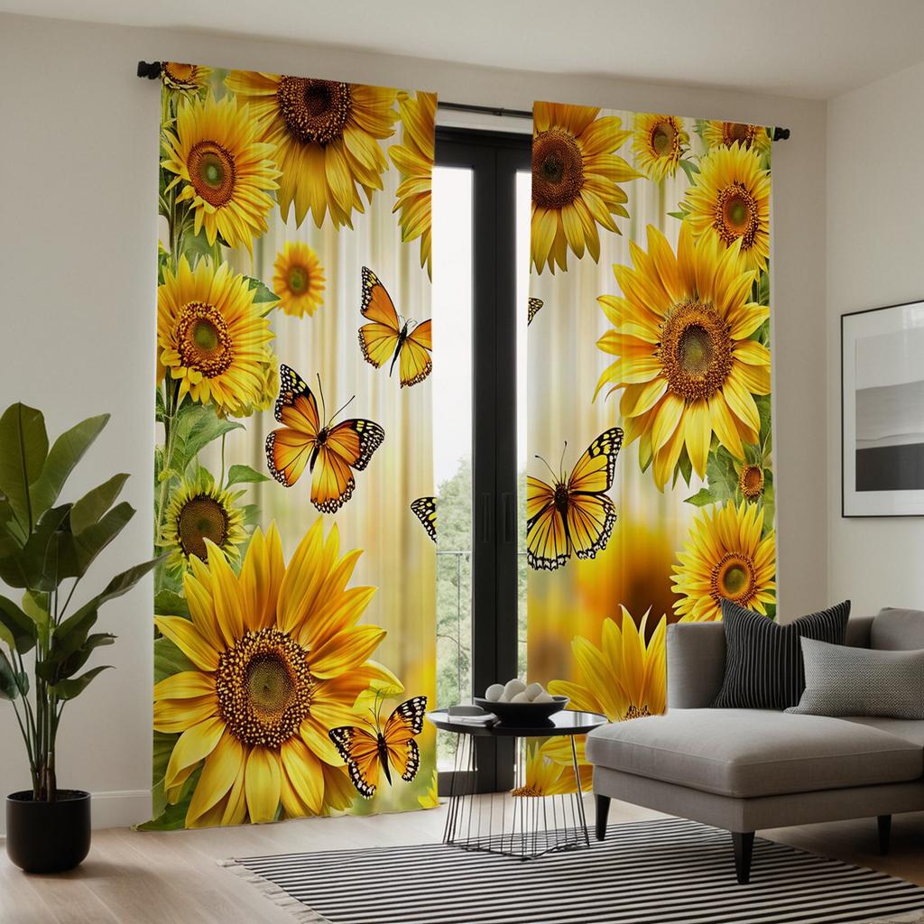 2 шт. HD цифровая занавеска с принтом желтый галстук цветы подсолнуха бабочка украшение дома стиль Украсьте гостиную спальню Wea