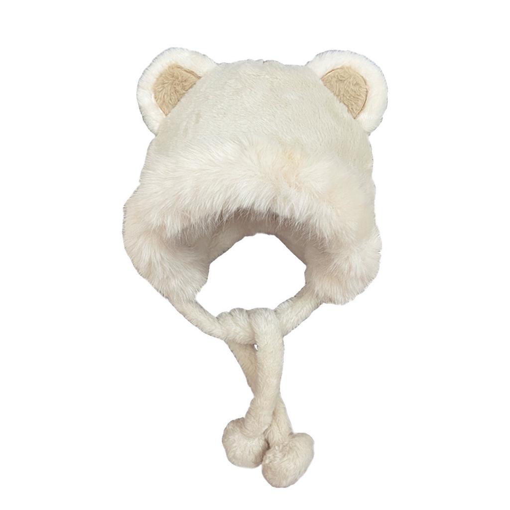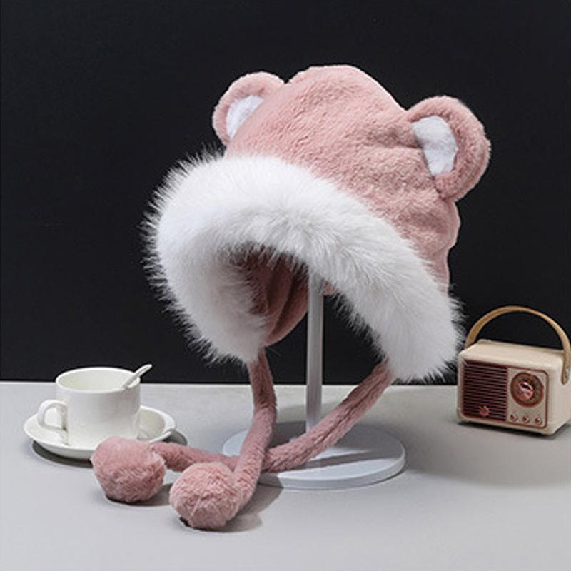 Осень и Зима Корейская Версия Милая Плюшевая Шапка с Медведем для Женщин Утепленная Теплая Ветрозащитная Защита Ушей Шапка Лей Фэн Показывающая Лицо Маленький Капюшон