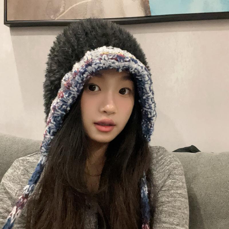 Осень и Зима Большой Обхват Головы Шерстяная Шляпа Подчеркивающая Маленькое Лицо Утолщенная Теплая Шапка Защита Ушей Вязаная Повязка на Голову Вязаная Шапка