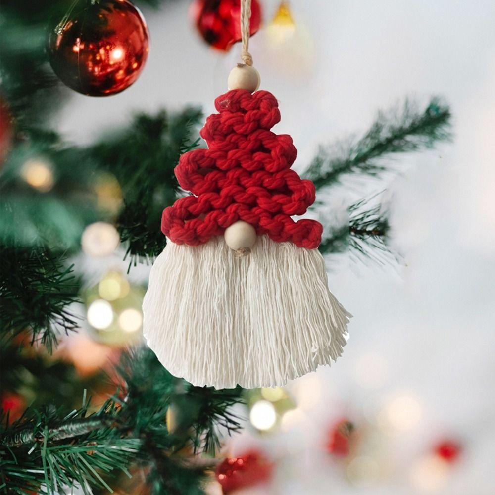 Macrame Christmas Tree Tassel Pendant Cotton Woven Santa Handwoven Christmas Tree Pendant Handmade Decorative Window