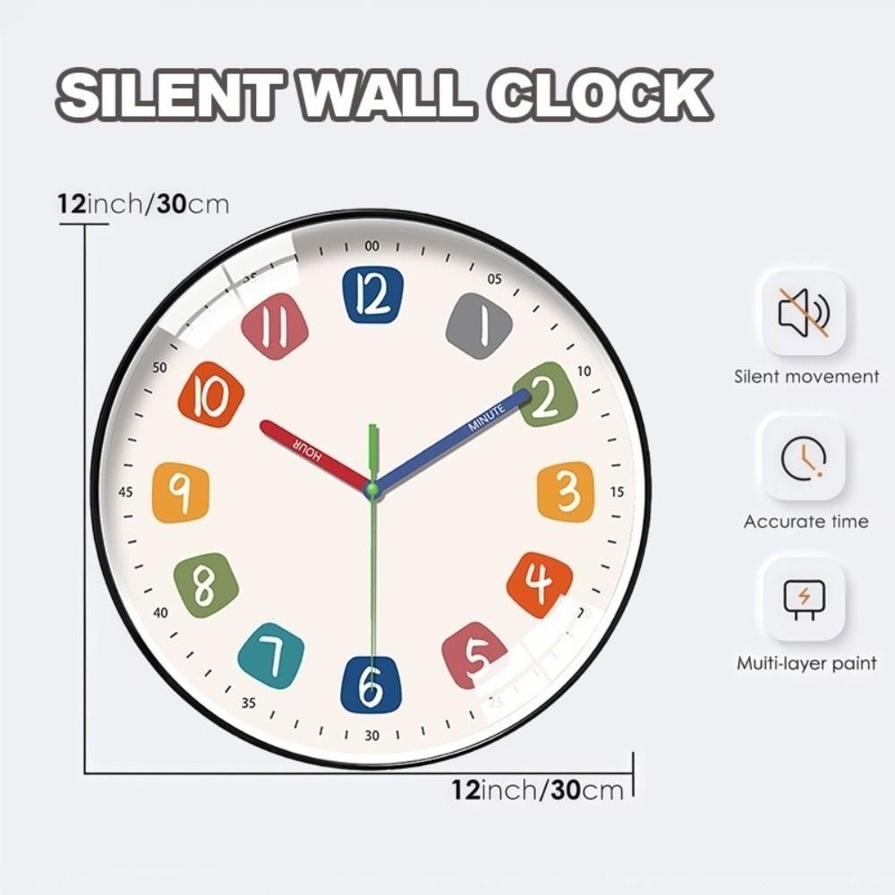 Colorful Early Education Wall Clock Round Mute Electronic Color Clock Minimalist Punch-free Learning Wall Hanging Clock Home